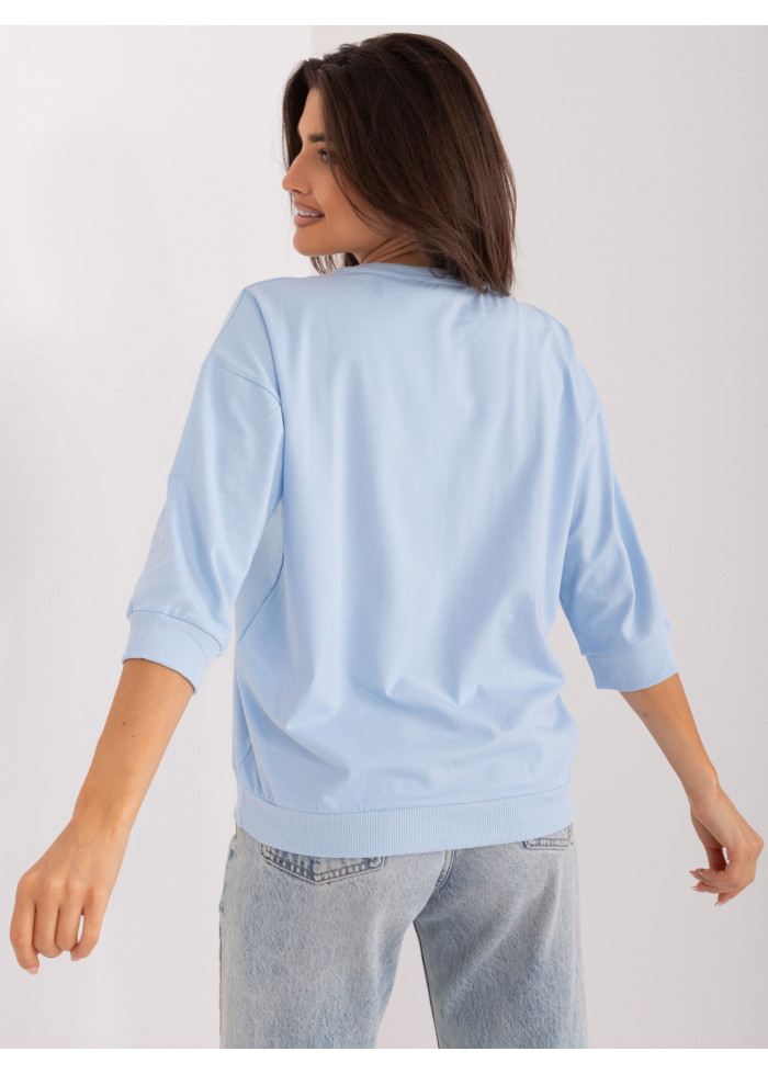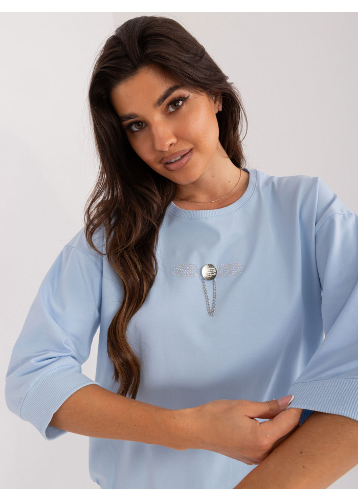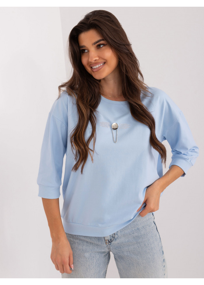 Bavlnené dámske tričko s 3/4 rukávom, jednoduchý voľnejší strih, okrúhly výstrih, ozdobná retiazka vpredu, rebrovaný lém na rukávoch a v spodnej časti, modelka má na sebe univerzálnu veľkosť, miery modelky: výška: 173 cm, prsia: 89 cm, pás: 65 cm, boky: 91 cm, rozmer produktu meraného na plocho:, šírka pod pazuchami - 59 cm, dĺžka rukáva - 44 cm, celková dĺžka - 58 cm.