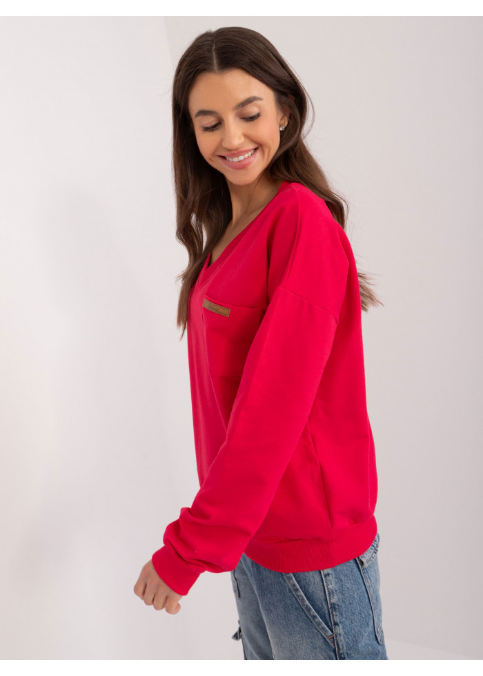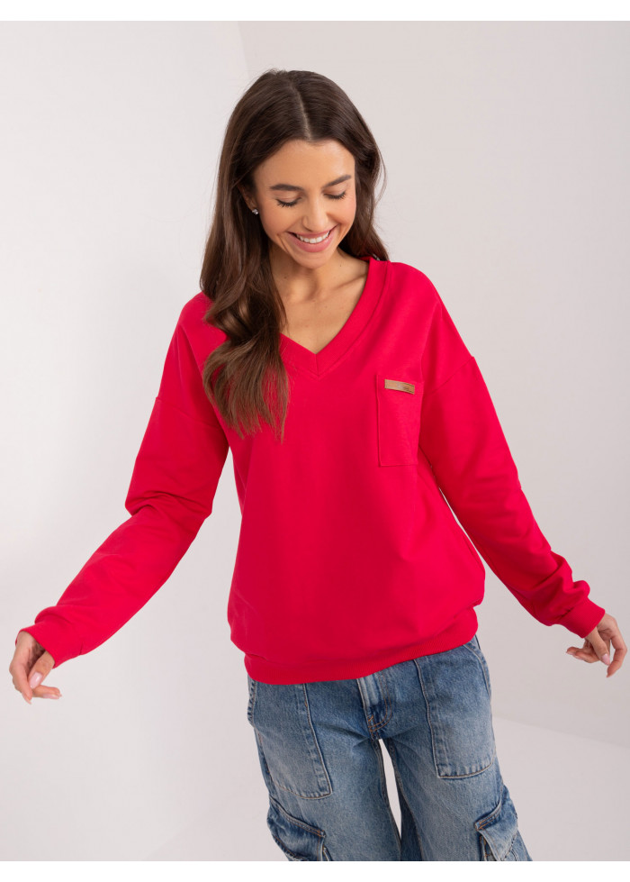 Bavlnené dámske tričko s dlhým rukávom, výstrih do v, 1 vrecko v prednej časti, dlhé rukávy s lémom, lém v spodnej časti, modelka má na sebe univerzálnu veľkosť, miery modelky: výška: 172 cm, prsia: 88 cm, pás: 63 cm, boky: 92 cm, rozmer produktu meraného na plocho:, šírka pod pazuchami - 55 cm, celková dĺžka - 60 cm, dĺžka rukáva - 60 cm.
