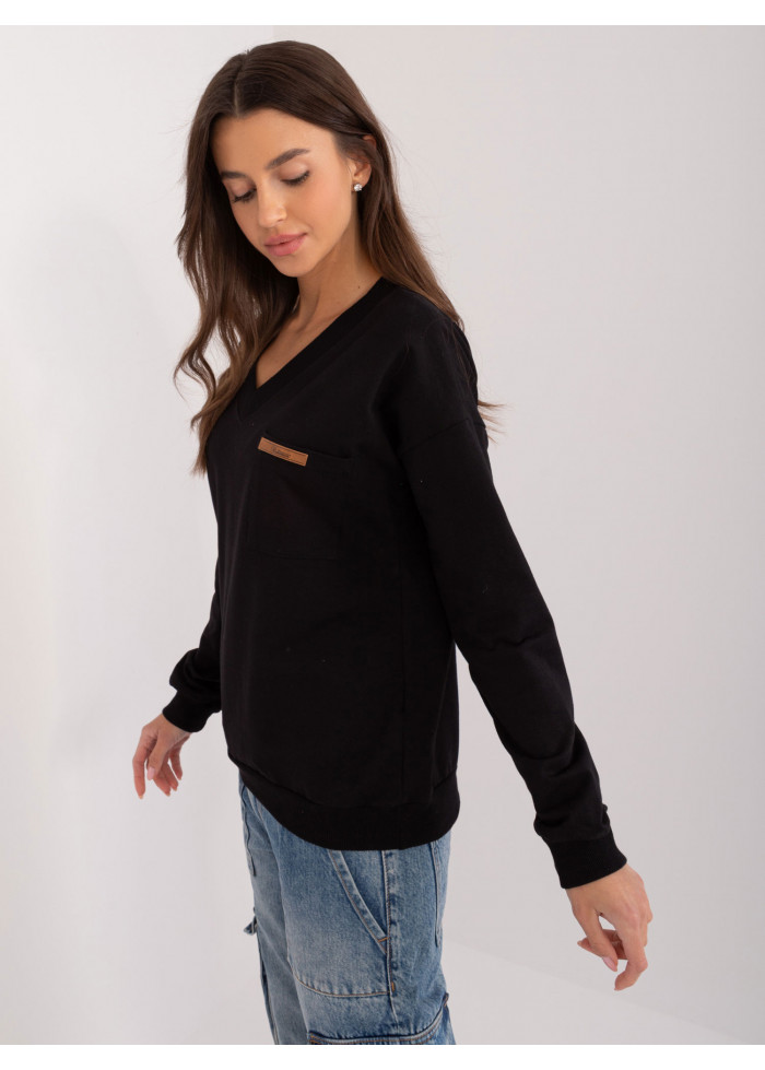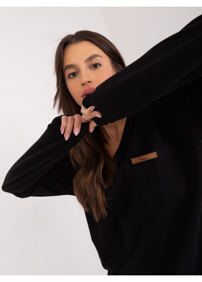 Bavlnené dámske tričko s dlhým rukávom, výstrih do v, 1 vrecko v prednej časti, dlhé rukávy s lémom, lém v spodnej časti, modelka má na sebe univerzálnu veľkosť, miery modelky: výška: 172 cm, prsia: 88 cm, pás: 63 cm, boky: 92 cm, rozmer produktu meraného na plocho:, šírka pod pazuchami - 55 cm, celková dĺžka - 60 cm, dĺžka rukáva - 60 cm.