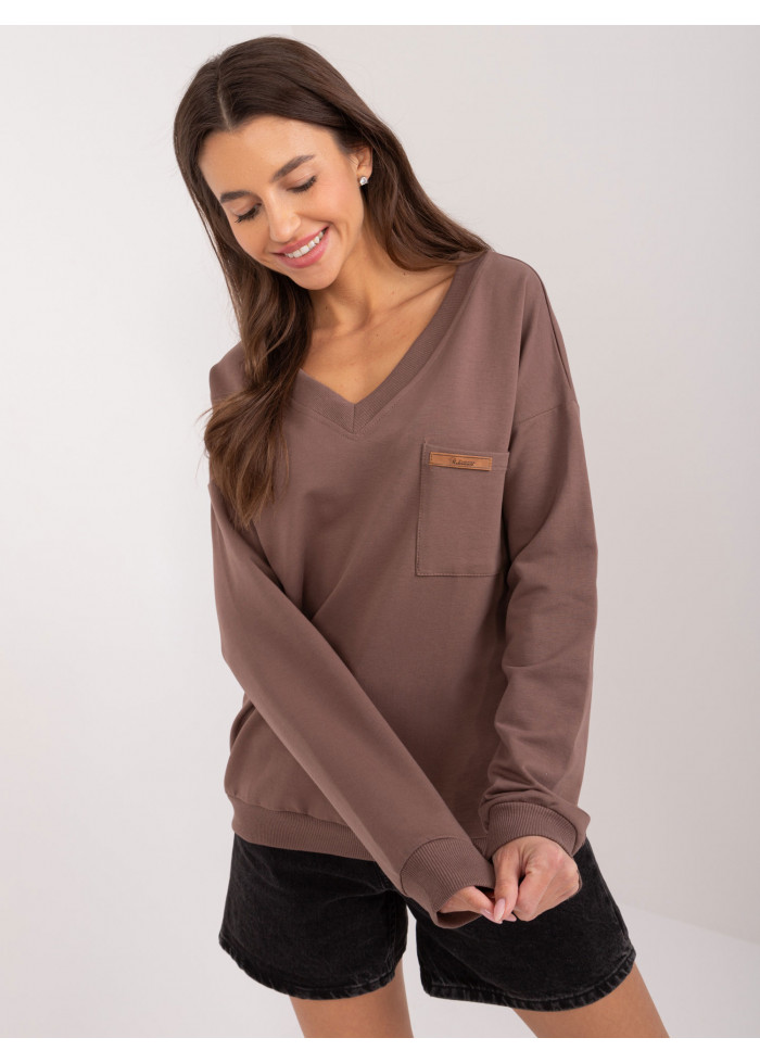 Bavlnené dámske tričko s dlhým rukávom, výstrih do v, 1 vrecko v prednej časti, dlhé rukávy s lémom, lém v spodnej časti, modelka má na sebe univerzálnu veľkosť, miery modelky: výška: 172 cm, prsia: 88 cm, pás: 63 cm, boky: 92 cm, rozmer produktu meraného na plocho:, šírka pod pazuchami - 55 cm, celková dĺžka - 60 cm, dĺžka rukáva - 60 cm.
