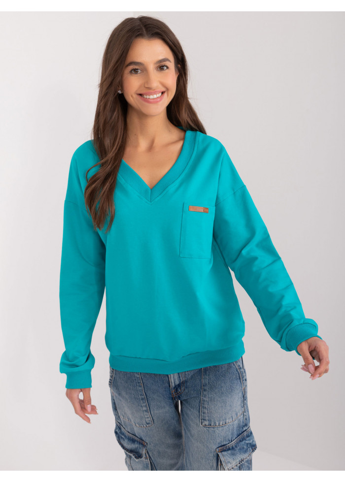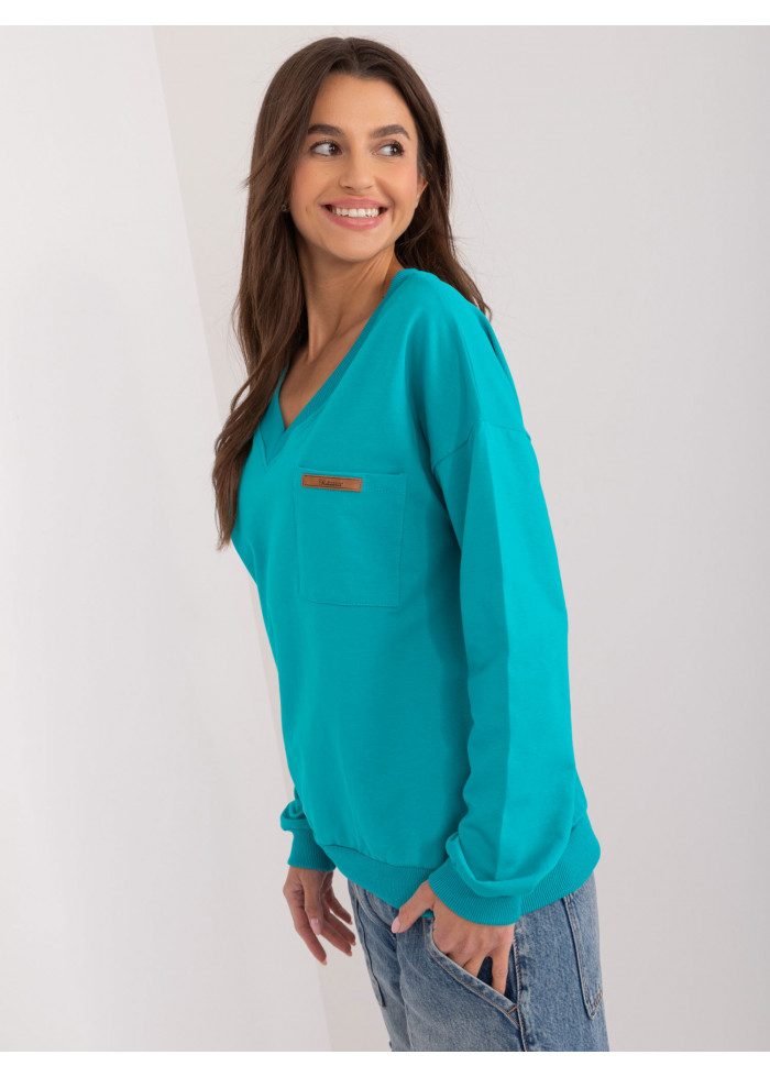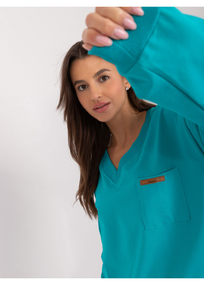 Bavlnené dámske tričko s dlhým rukávom, výstrih do v, 1 vrecko v prednej časti, dlhé rukávy s lémom, lém v spodnej časti, modelka má na sebe univerzálnu veľkosť, miery modelky: výška: 172 cm, prsia: 88 cm, pás: 63 cm, boky: 92 cm, rozmer produktu meraného na plocho:, šírka pod pazuchami - 55 cm, celková dĺžka - 60 cm, dĺžka rukáva - 60 cm.