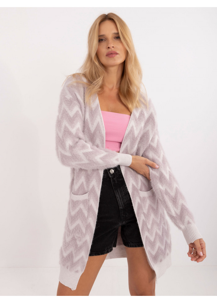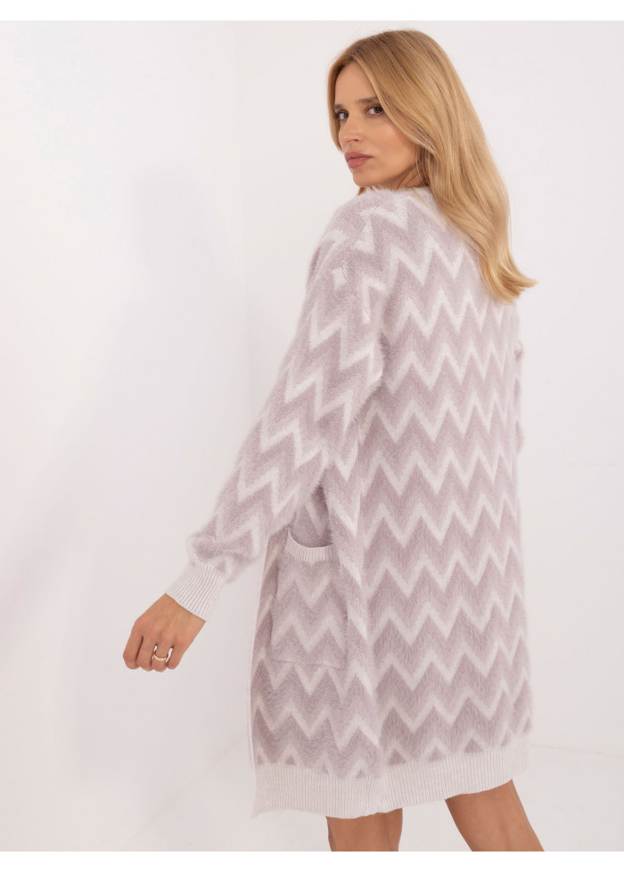 Dámsky kardigán s vreckami, zaujímavý vzor, dlhé rukávy s lémom, lém v spodnej časti, modelka má na sebe univerzálnu veľkosť, miery modelky: výška 175 cm, prsia 90 cm, pás 66 cm, boky 94 cm, rozmer produktu meraného na plocho:, šírka pod pazuchami - 56 cm, dĺžka rukáva - 61 cm, celková dĺžka - 88 cm.