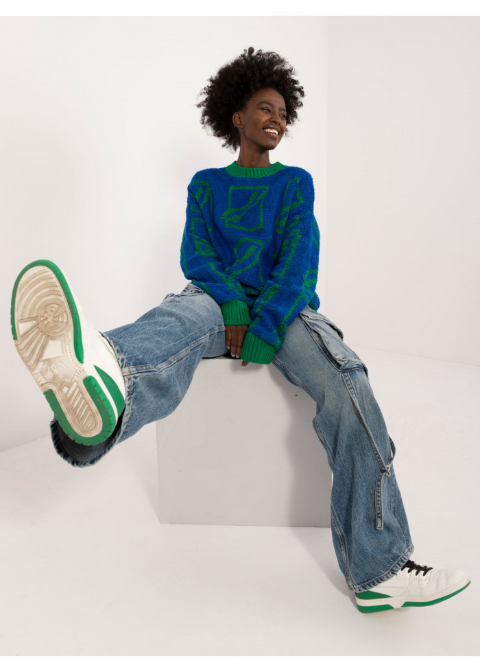 Modrý dámsky oversize sveter
