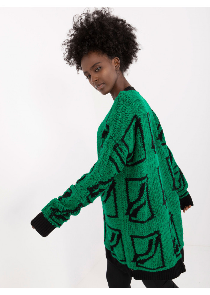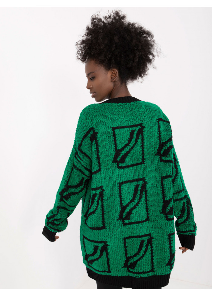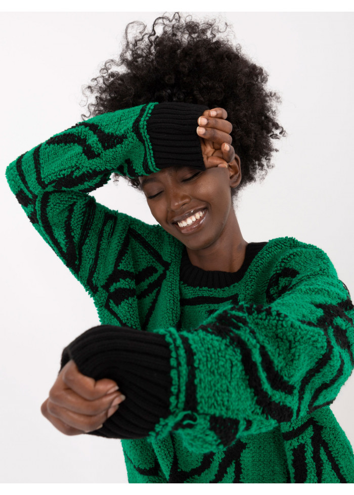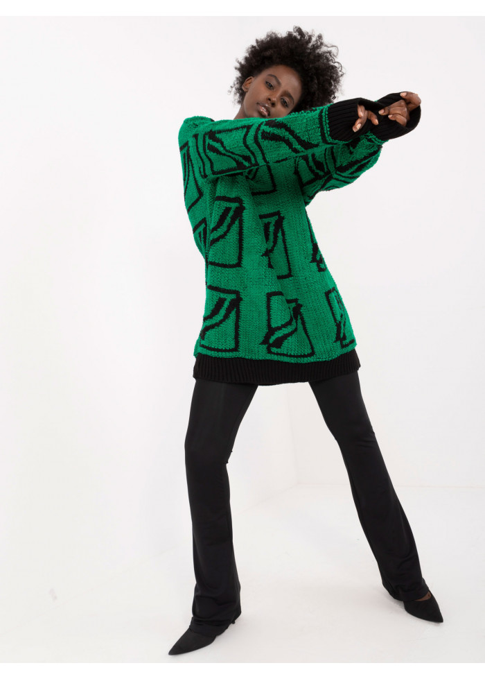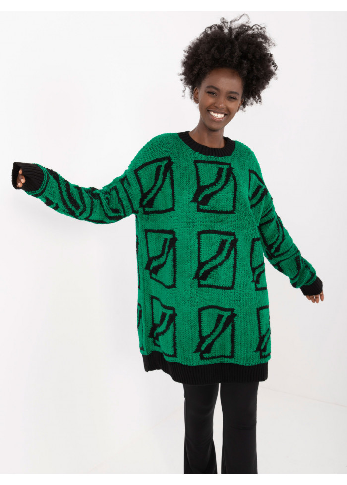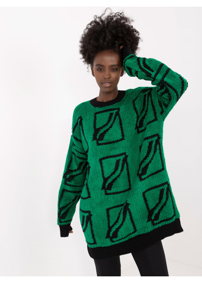 Dámsky oversize sveter, zaujímavý vzor, okrúhly výstrih, voľný predlžený strih, kontrastné lemovanie, modelka má na sebe univerzálnu veľkosť, miery modelky: výška: 168 cm, prsia: 82 cm, pás: 62 cm, boky: 93 cm, rozmer produktu meraného na plocho:, šírka svetra pod pazuchami - 58 cm, dĺžka svetra - 82 cm, dĺžka rukáva - 71 cm.
