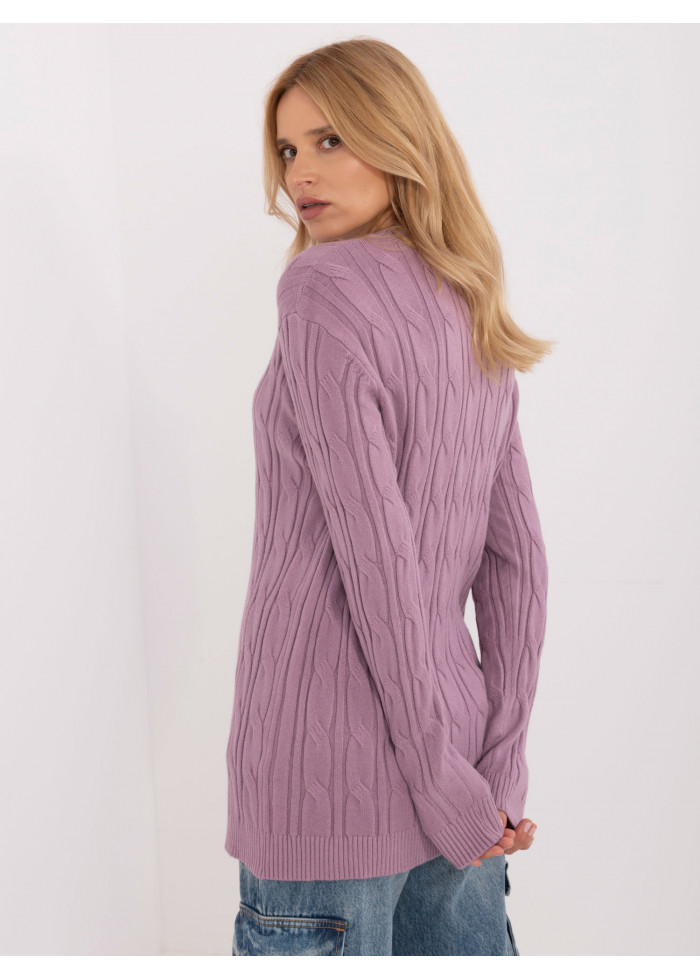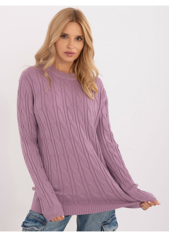 Dámsky sveter, módny predlžený strih, zaujímavý pletený vzor, okrúhly výstrih s hrubším lemovaním, modelka má na sebe univerzálnu veľkosť, miery modelky: výška 175 cm, prsia 90 cm, pás 66 cm, boky 94 cm, rozmer produktu meraného na plocho:, šírka pod pazuchami - 55 cm, dĺžka rukáva - 62 cm, celková dĺžka - 74 cm.