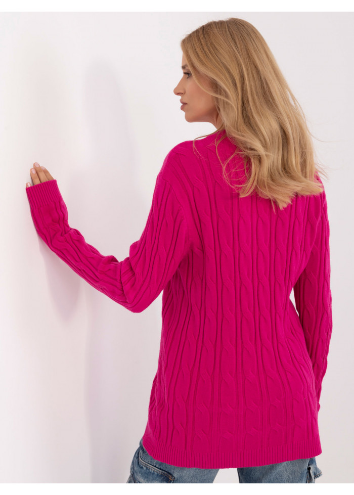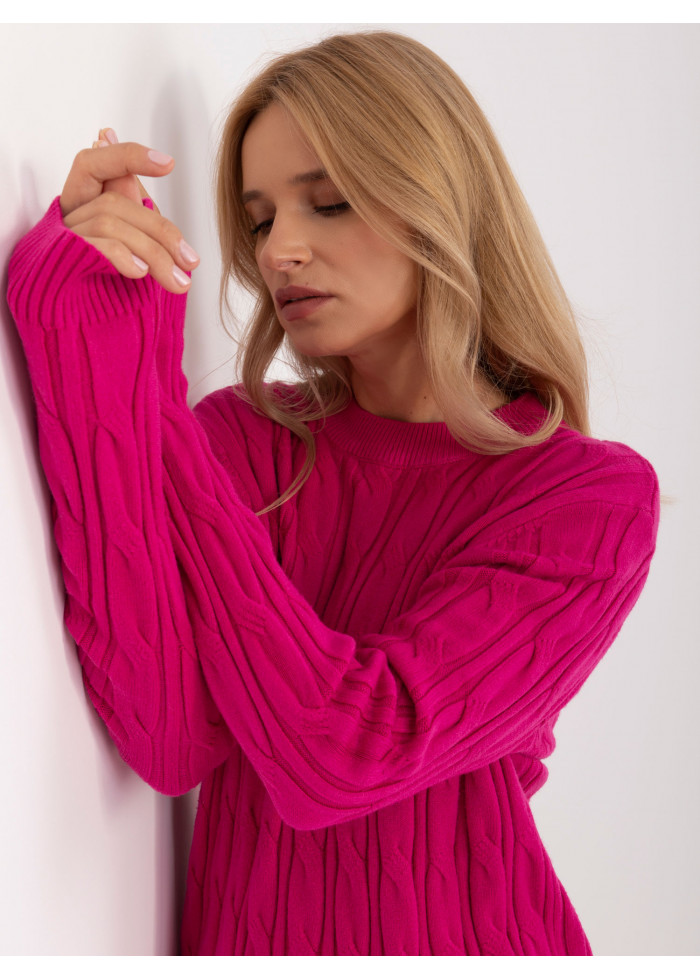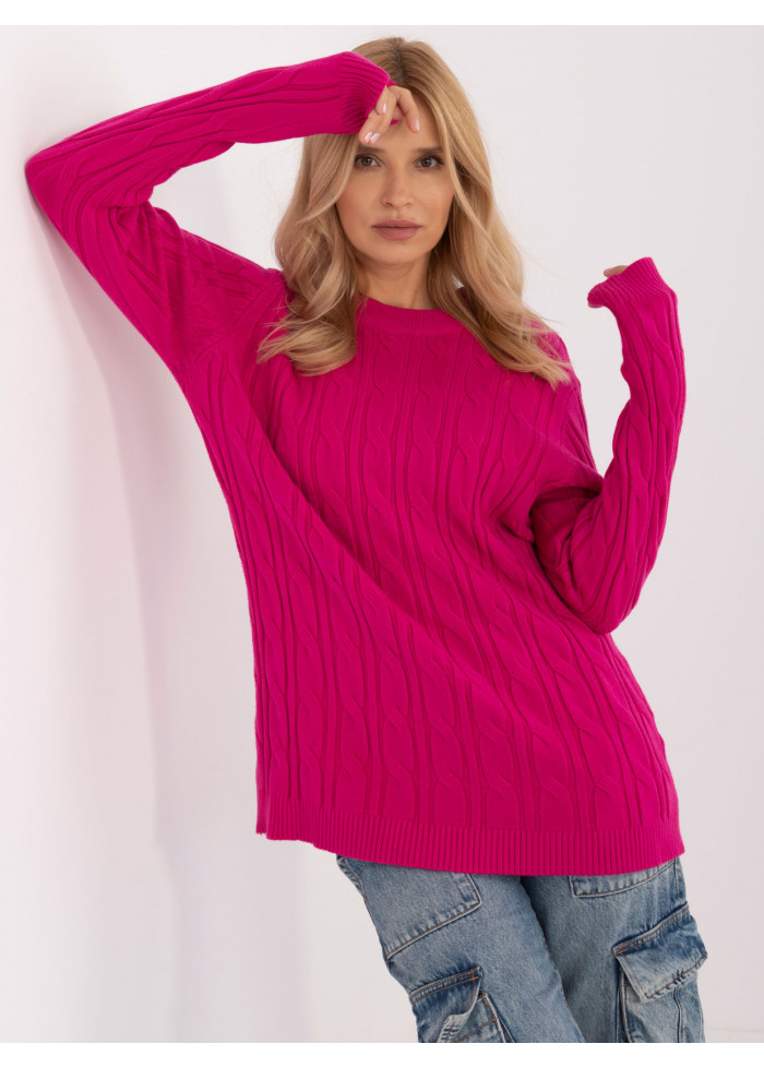 Dámsky sveter, módny predlžený strih, zaujímavý pletený vzor, okrúhly výstrih s hrubším lemovaním, modelka má na sebe univerzálnu veľkosť, miery modelky: výška 175 cm, prsia 90 cm, pás 66 cm, boky 94 cm, rozmer produktu meraného na plocho:, šírka pod pazuchami - 55 cm, dĺžka rukáva - 62 cm, celková dĺžka - 74 cm.