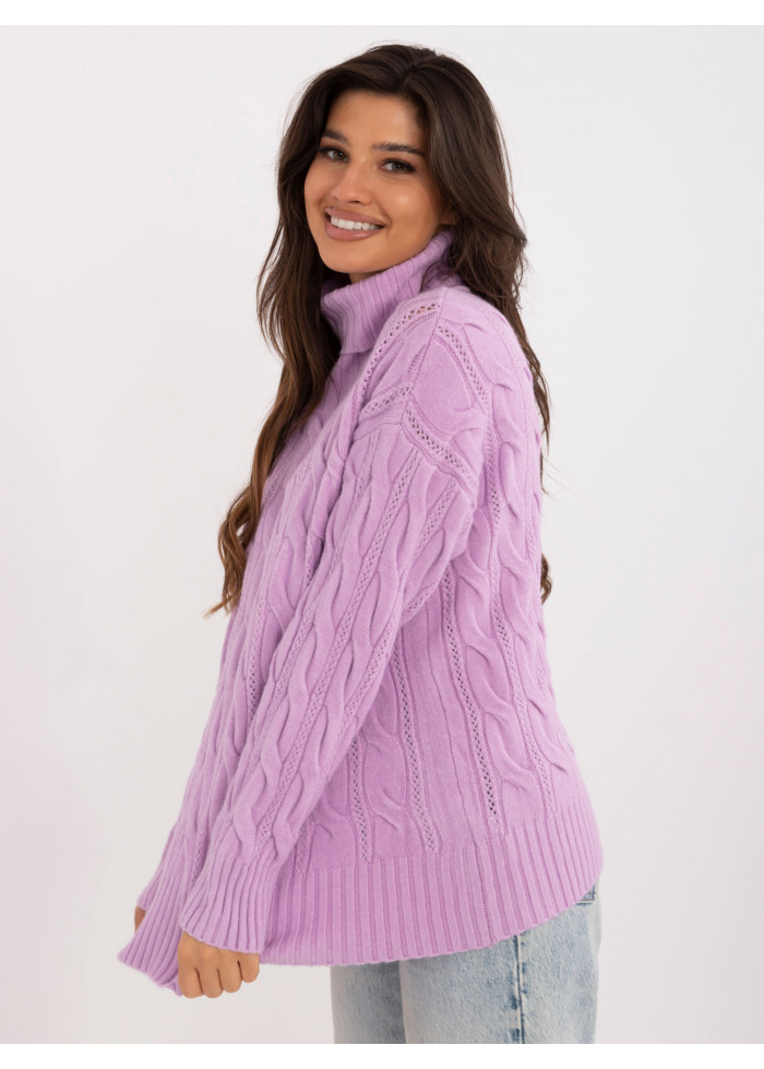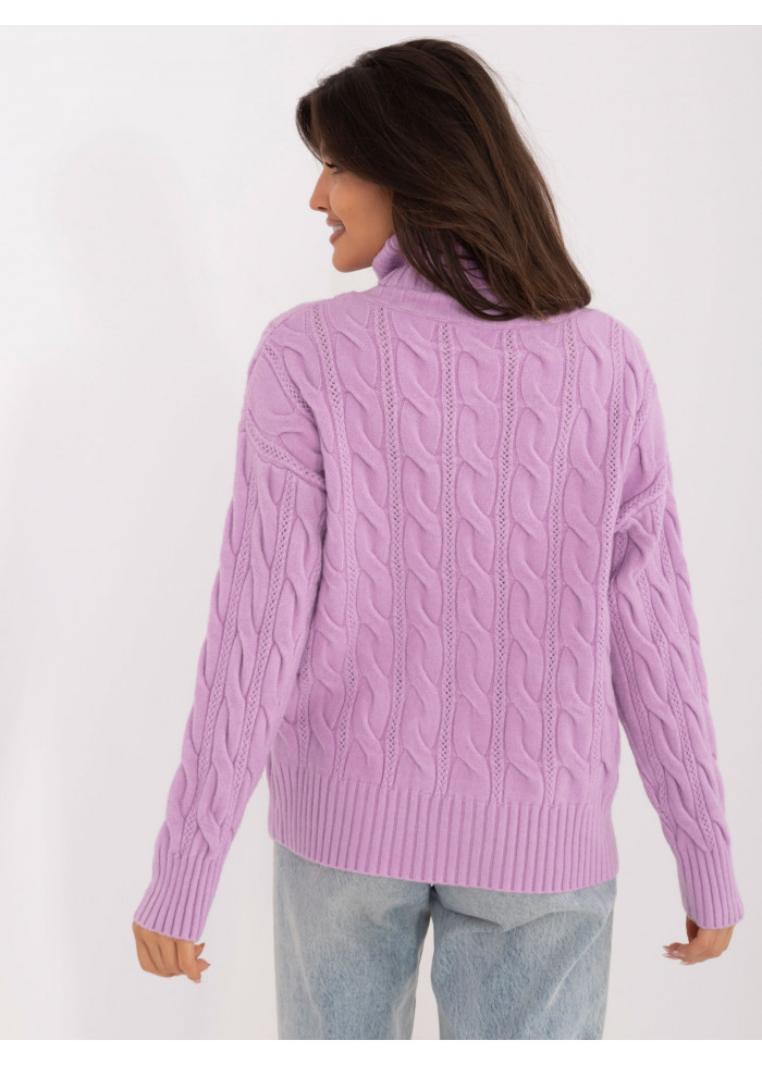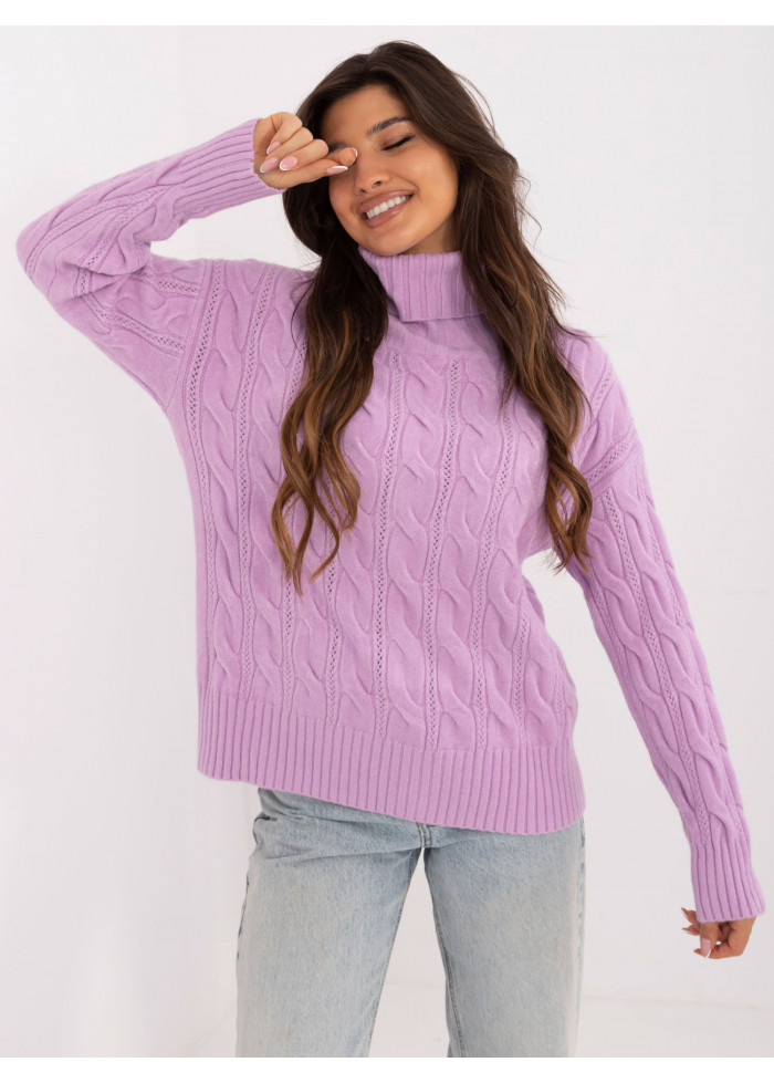Dámsky pletený rolák, zaujímavý pletený vzor, golier a lemy na rukávoch z rebrovej pleteniny, modelka má na sebe univerzálnu veľkosť, miery modelky: výška: 173 cm, prsia: 89 cm, pás: 65 cm, boky: 91 cm, rozmer produktu meraného na plocho:, šírka pod pazuchami - 60 cm, dĺžka rukáva - 60 cm, celková dĺžka - 64 cm.