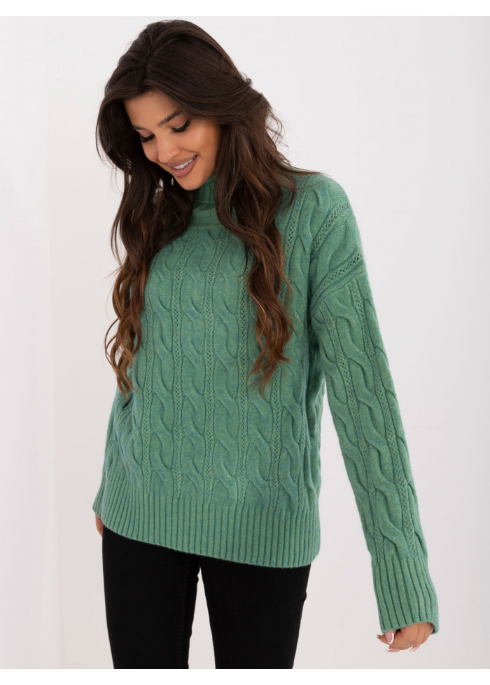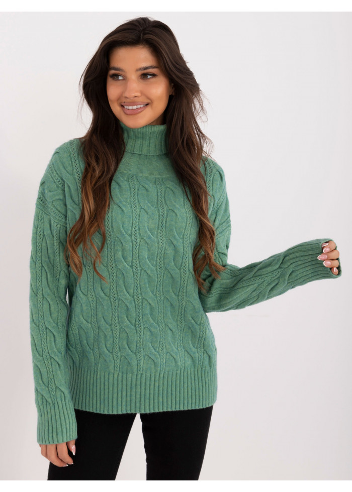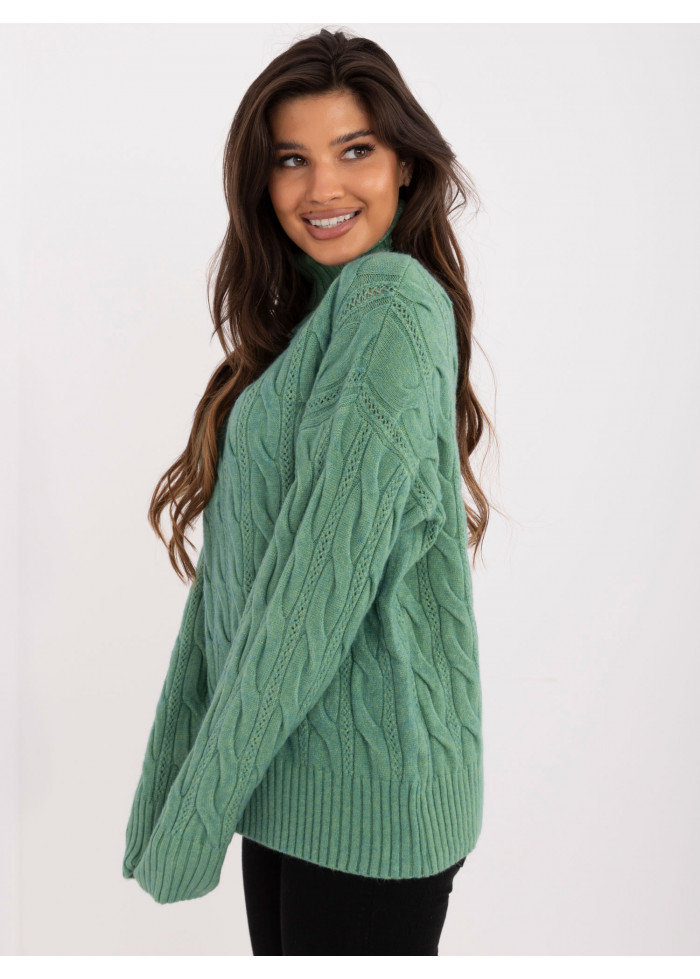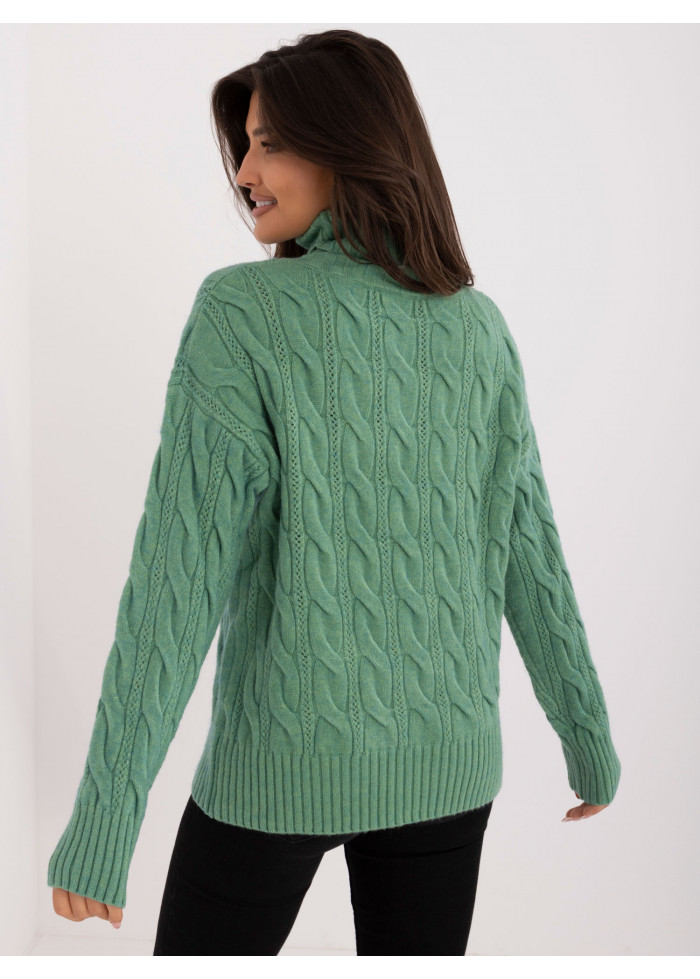 Dámsky pletený rolák, zaujímavý pletený vzor, golier a lemy na rukávoch z rebrovej pleteniny, modelka má na sebe univerzálnu veľkosť, miery modelky: výška: 173 cm, prsia: 89 cm, pás: 65 cm, boky: 91 cm, rozmer produktu meraného na plocho:, šírka pod pazuchami - 60 cm, dĺžka rukáva - 60 cm, celková dĺžka - 64 cm.