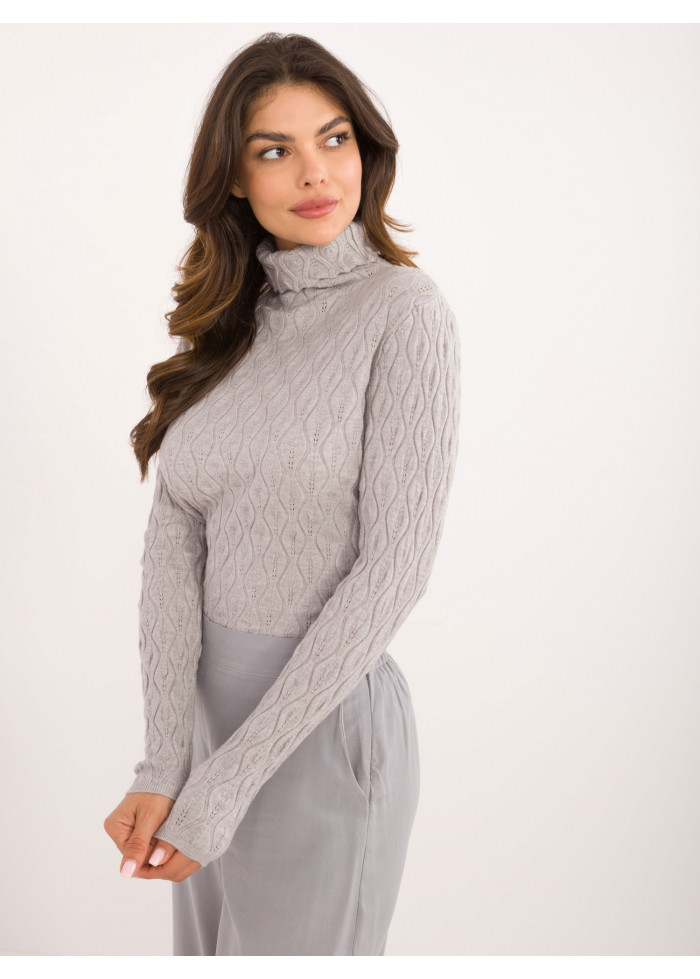 Dámsky pletený rolák, zaujímavý pletený vzor, dlhý rukáv, modelka má na sebe univerzálnu veľkosť, miery modelky: výška 173 cm, prsia 85 cm, pás 62 cm, boky 95 cm, rozmer produktu meraného na plocho:, šírka pod pazuchami - 48 cm, dĺžka rukáva - 65 cm, celková dĺžka - 65 cm.