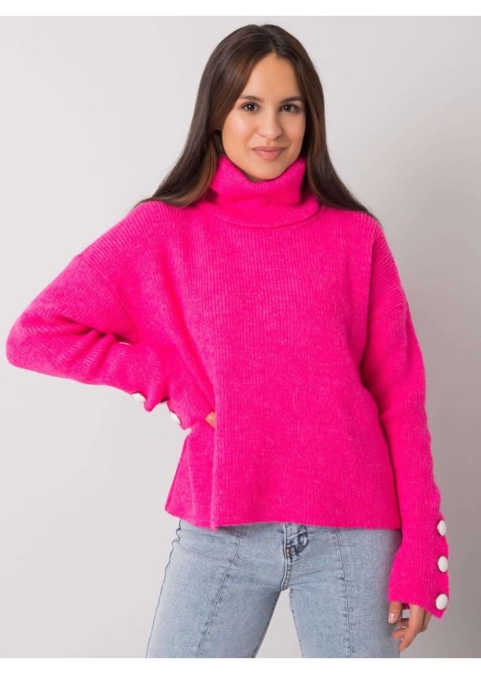 Dámsky pletený sveter, rolákový golier, dlhé rukávy s gombíkmi, pohodlný voľný strih, univerzálna veľkosť, materiál: 76% akryl, 18% polyester, 6% elastan, spôsob prania: pranie v práčke na 30°c, modelka má oblečenú jednu veľkosť. miery modelky: výška 172 cm, prsia 89 cm, pás 65 cm, boky 93 cm., rozmery svetra merané naplocho: šírka v podpazuší - 66 cm, celková dĺžka - 55 cm, dĺžka rukáva - 59 cm.