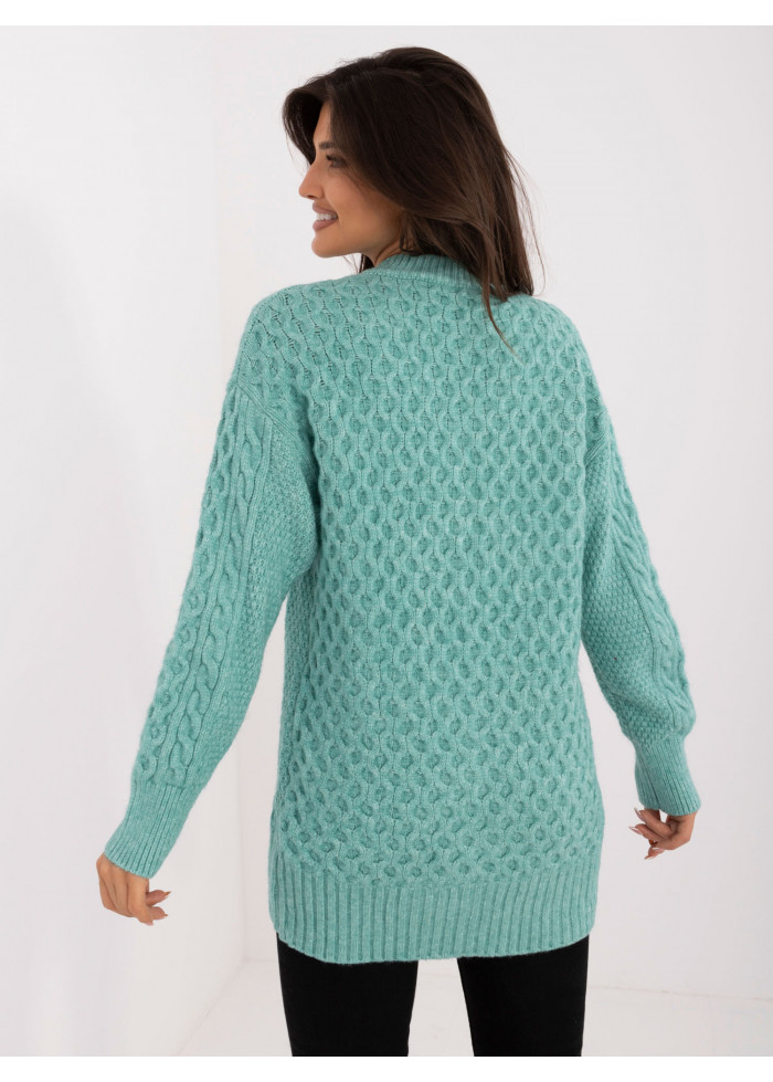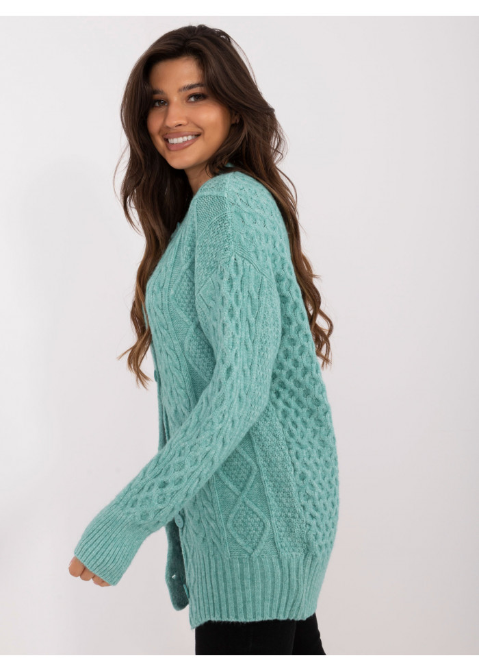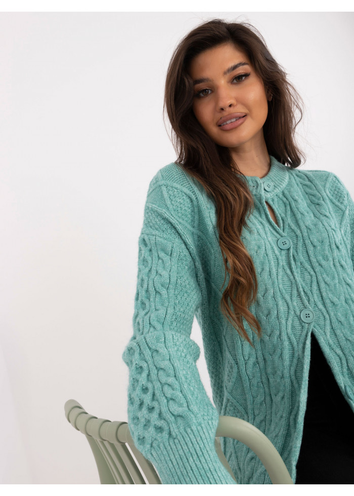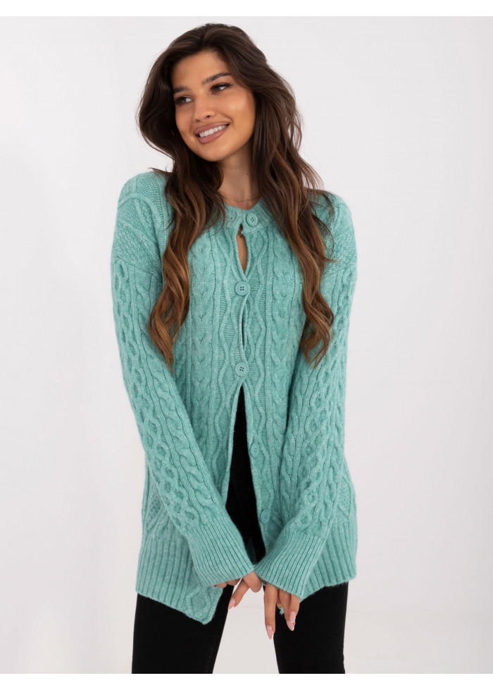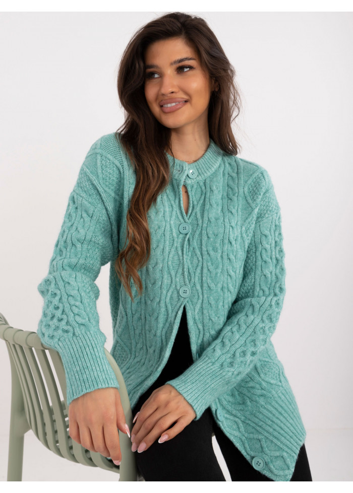 Dámsky sveter na gombíky, módny predlžený strih, zaujímavý pletený vzor, okrúhly dekolt, lémy na koncoch rukávov a v spodnej časti, modelka má na sebe univerzálnu veľkosť, miery modelky: výška: 172 cm, prsia: 88 cm, pás: 63 cm, boky: 92 cm, rozmer produktu meraného na plocho:, šírka pod pazuchami - 58 cm, dĺžka rukáva - 60 cm, celková dĺžka - 75 cm.