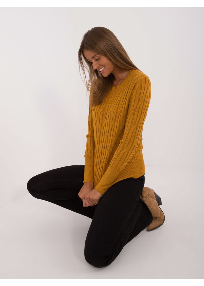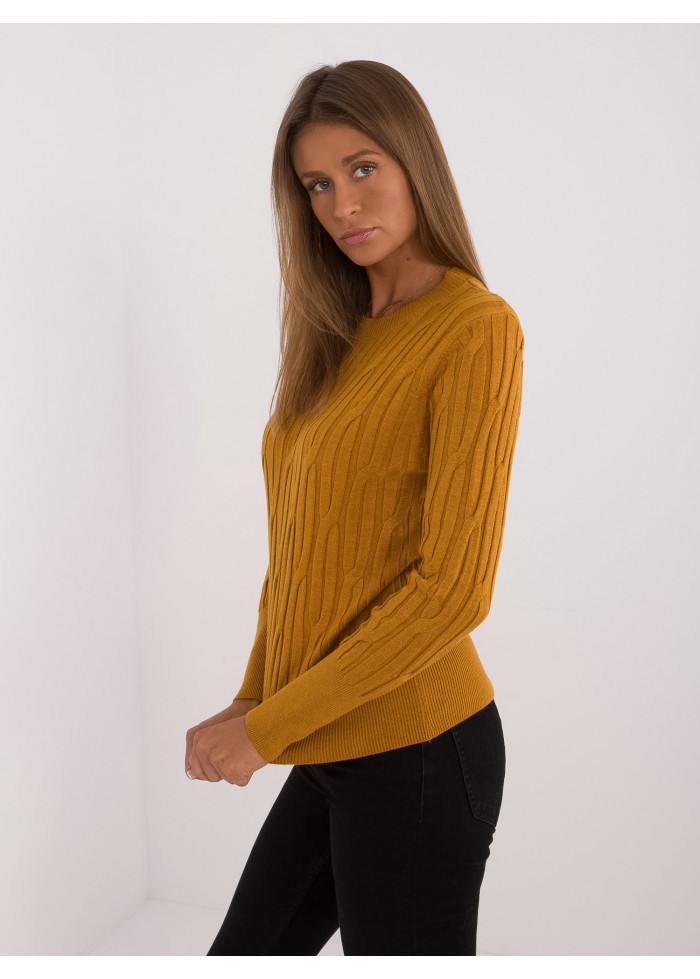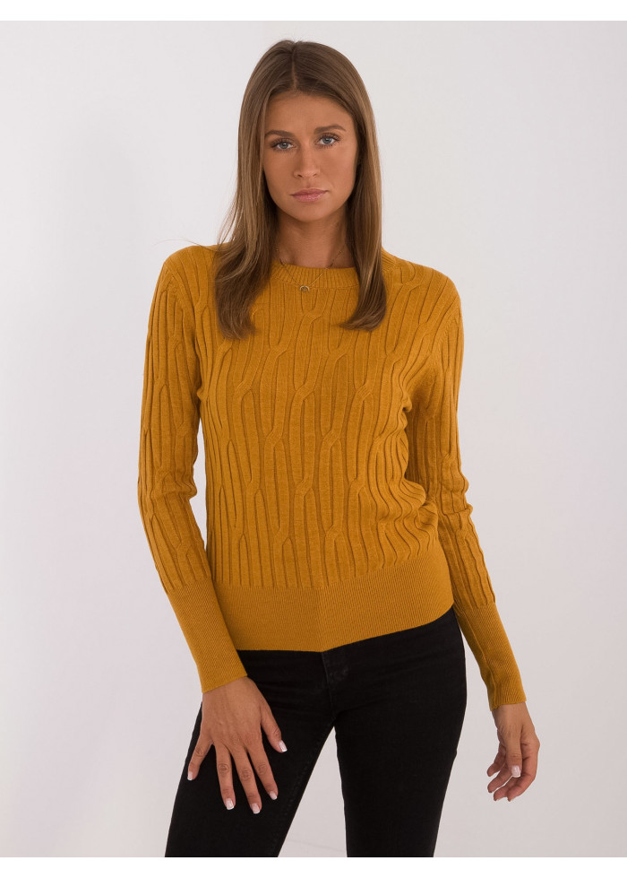 Dámsky sveter, zaujímavý pletený vzor, okrúhly výstrih, jemné sťahujúce lémy na koncoch rukávov a v spodnej časti, modelka má na sebe univerzálnu veľkosť, miery modelky: výška 173 cm, prsia 85 cm, pás 62 cm, boky 95 cm, rozmer produktu meraného na plocho:, šírka pod pazuchami - 44 cm (pružný materiál), dĺžka rukáva - 58 cm, celková dĺžka - 58 cm.