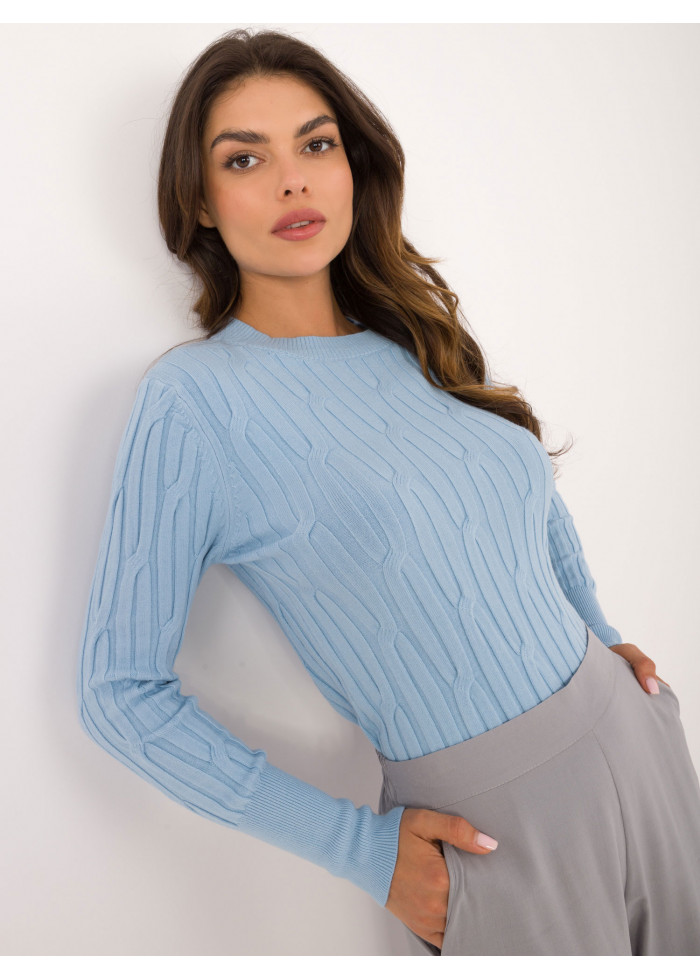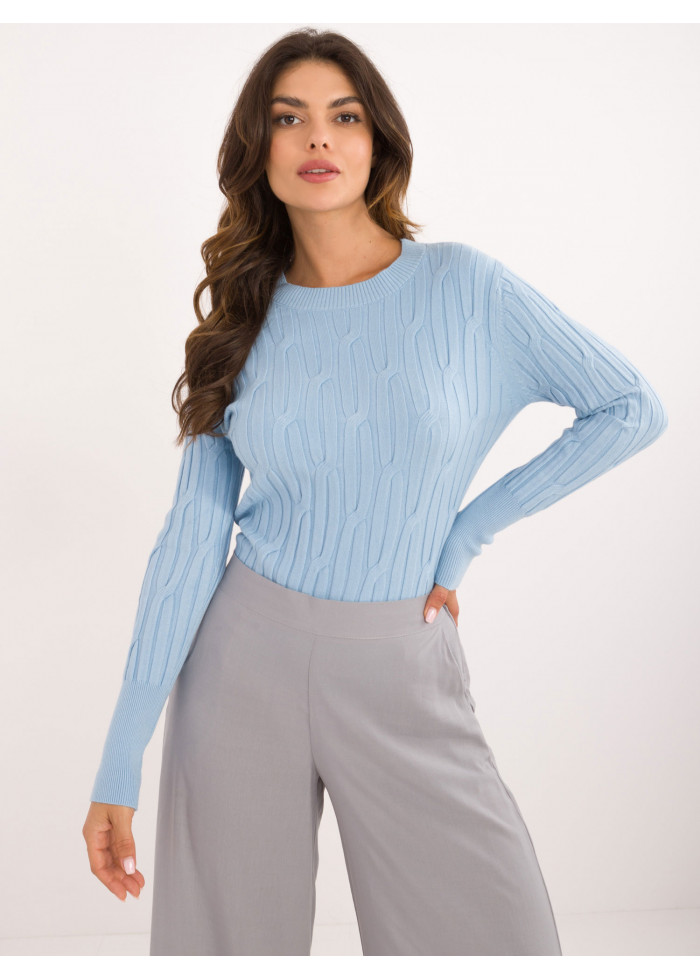 Dámsky sveter, zaujímavý pletený vzor, okrúhly výstrih, jemné sťahujúce lémy na koncoch rukávov a v spodnej časti, modelka má na sebe univerzálnu veľkosť, miery modelky: výška 173 cm, prsia 85 cm, pás 62 cm, boky 95 cm, rozmer produktu meraného na plocho:, šírka pod pazuchami - 44 cm (pružný materiál), dĺžka rukáva - 58 cm, celková dĺžka - 58 cm.