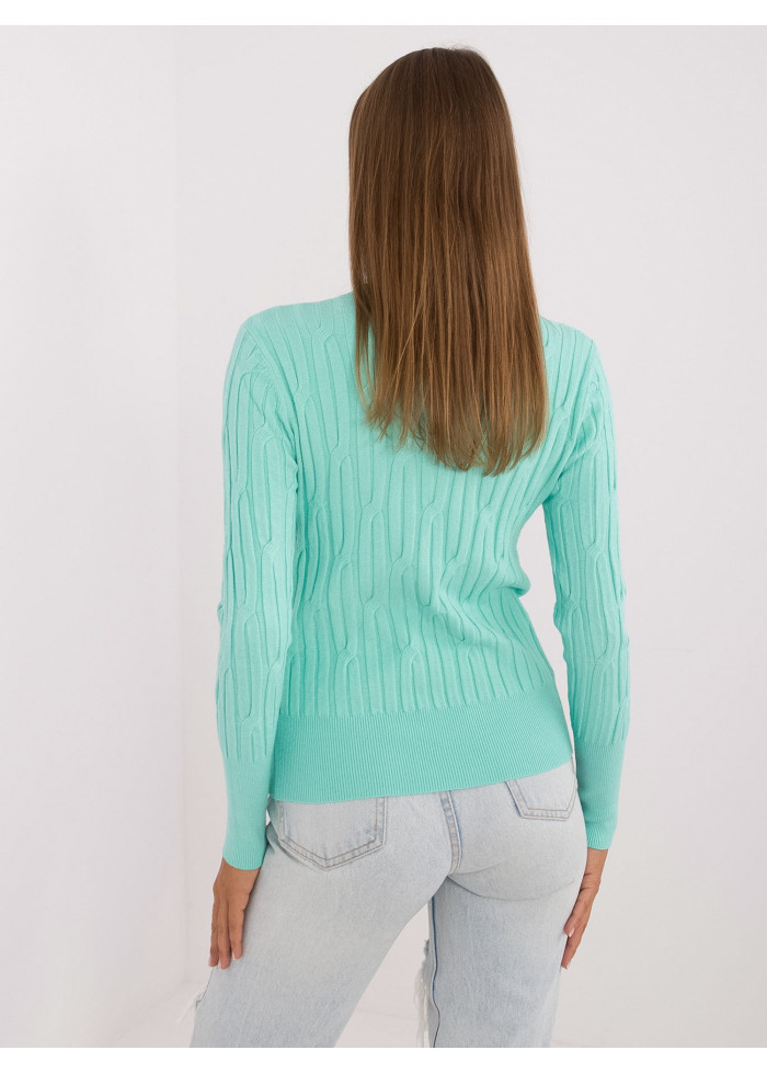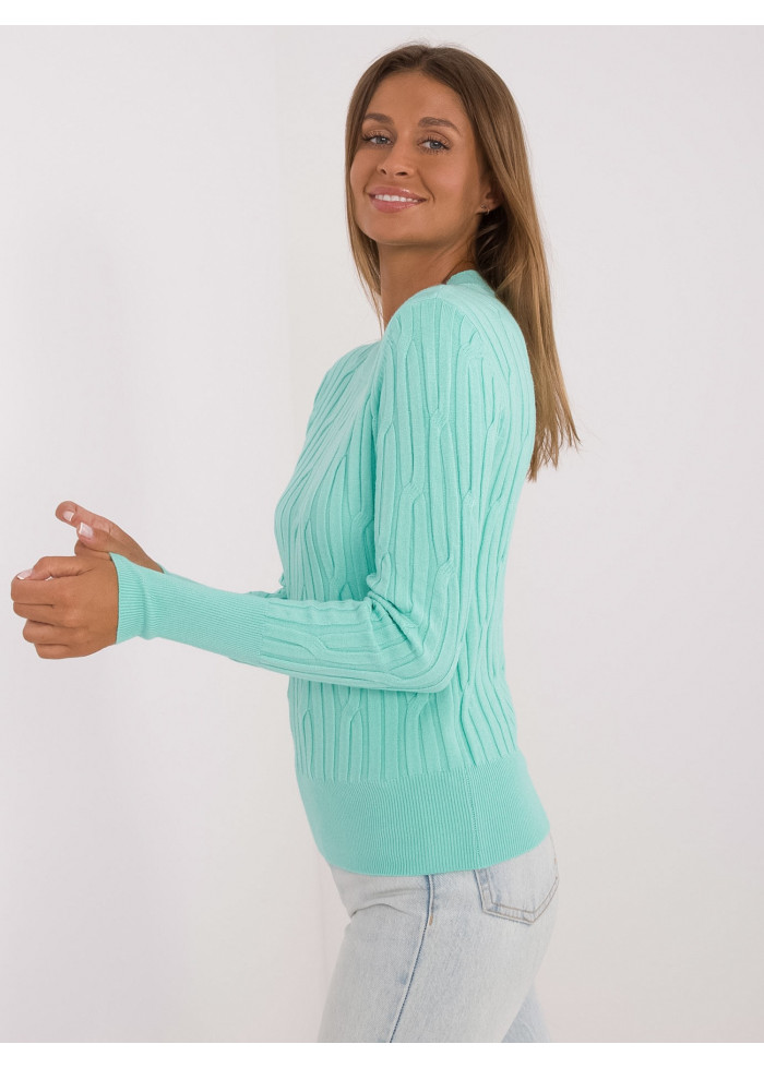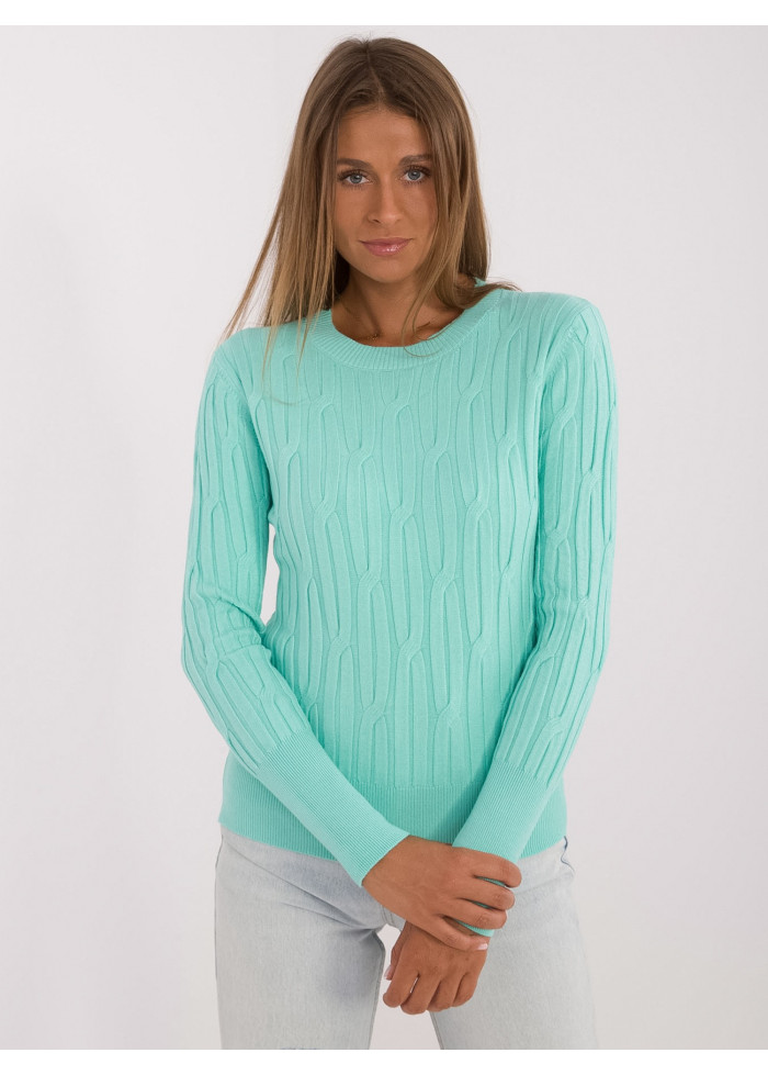 Dámsky sveter, zaujímavý pletený vzor, okrúhly výstrih, jemné sťahujúce lémy na koncoch rukávov a v spodnej časti, modelka má na sebe univerzálnu veľkosť, miery modelky: výška 173 cm, prsia 85 cm, pás 62 cm, boky 95 cm, rozmer produktu meraného na plocho:, šírka pod pazuchami - 44 cm (pružný materiál), dĺžka rukáva - 58 cm, celková dĺžka - 58 cm.