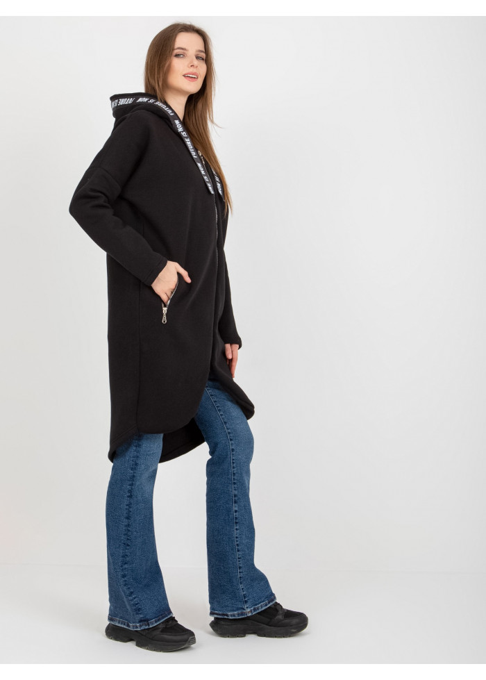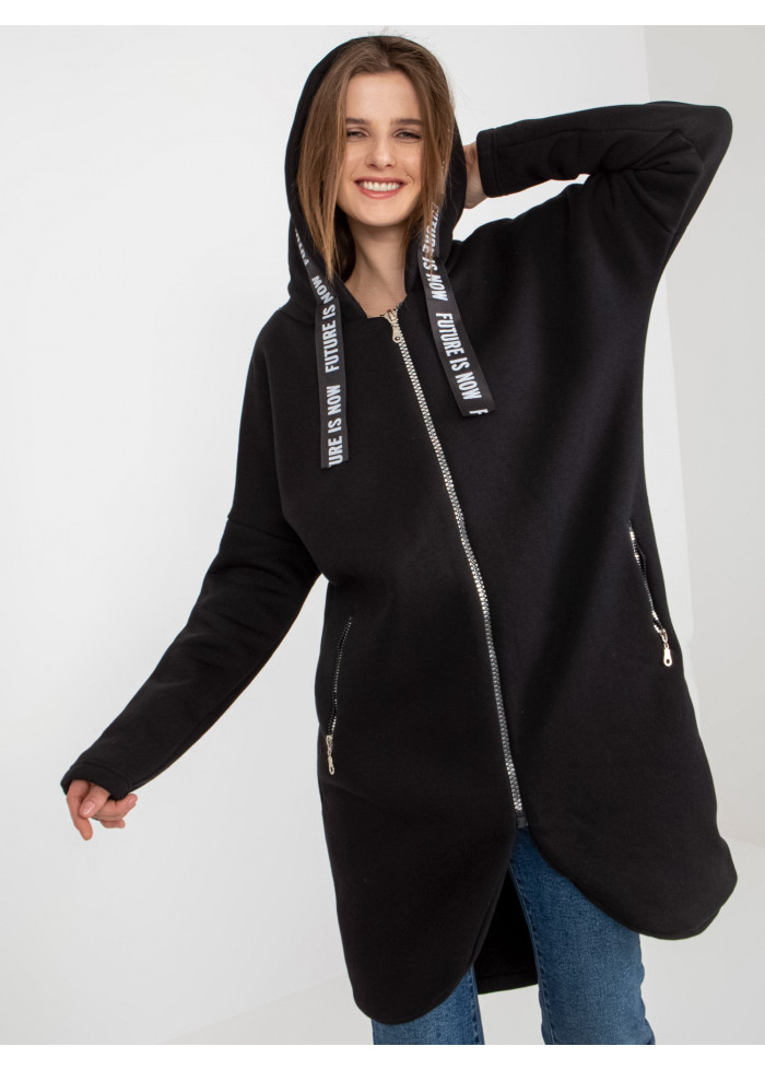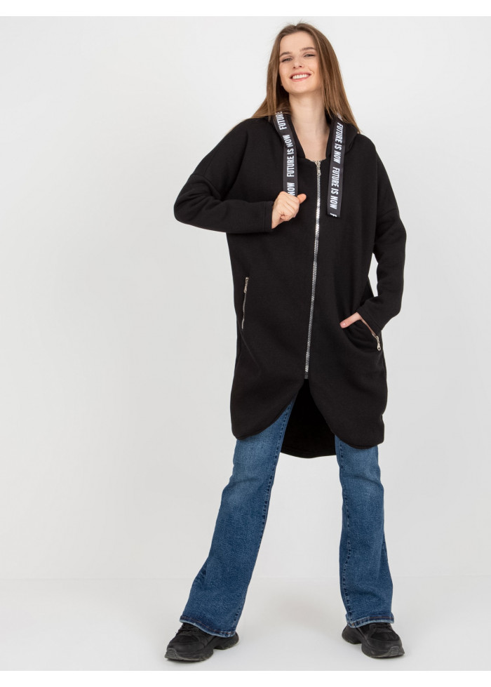 Dlhá mikina s kapucňou, ozdobná šnúrka na kapucni, zapínanie na zips, asymetrický strih, 2 vrecká, modelka má na sebe veľkosť s/m, miery modelky: výška: 173 cm, prsia: 78 cm, pás: 60 cm, boky: 90 cm, rozmer produktu meraného na plocho, vo veľkosti s/m:, šírka pod plecami: 67 cm, dĺžka rukáva: 64 cm, celková dĺžka: 105 cm.