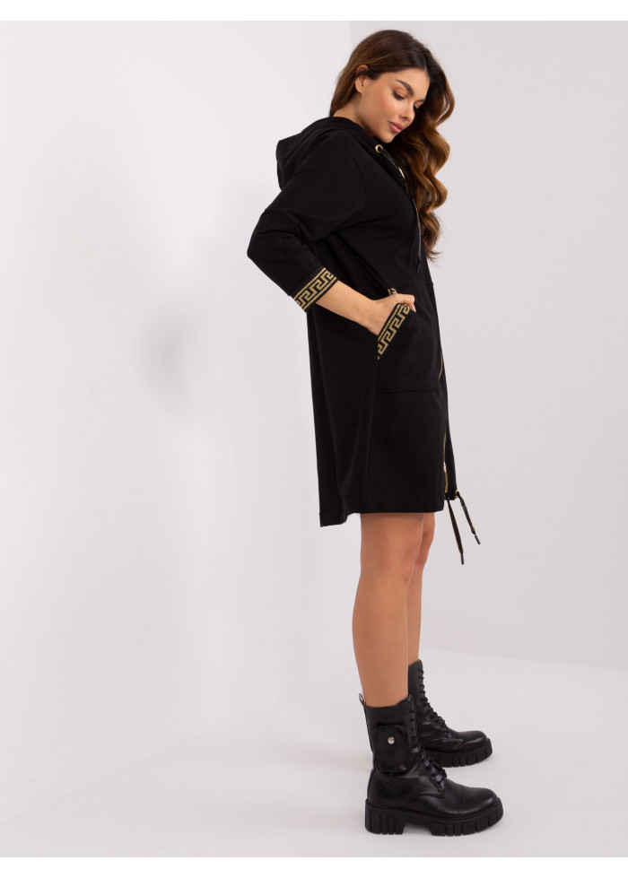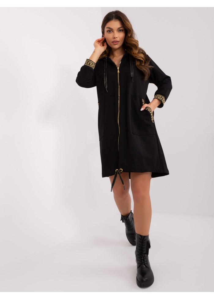 Dlhá mikina s kapucňou, ozdobná šnúrka na kapucni, zapínanie na zips, 2 vrecká, šnúrka v spodnej časti, ozdobné lemovanie, modelka má na sebe veľkosť s/m, miery modelky: výška 176 cm, prsia 85 cm, pás 64 cm, boky 92 cm, rozmer produktu meraného na plocho, vo veľkosti s/m:, šírka pod plecami: 52 cm, dĺžka rukáva: 48 cm, celková dĺžka: 93 cm.