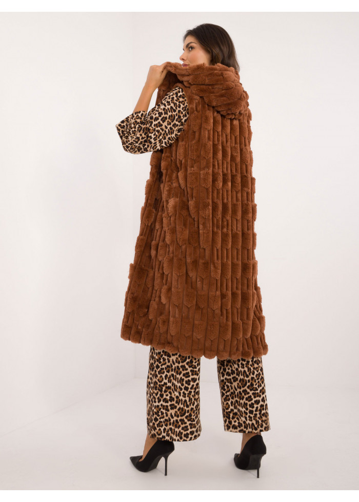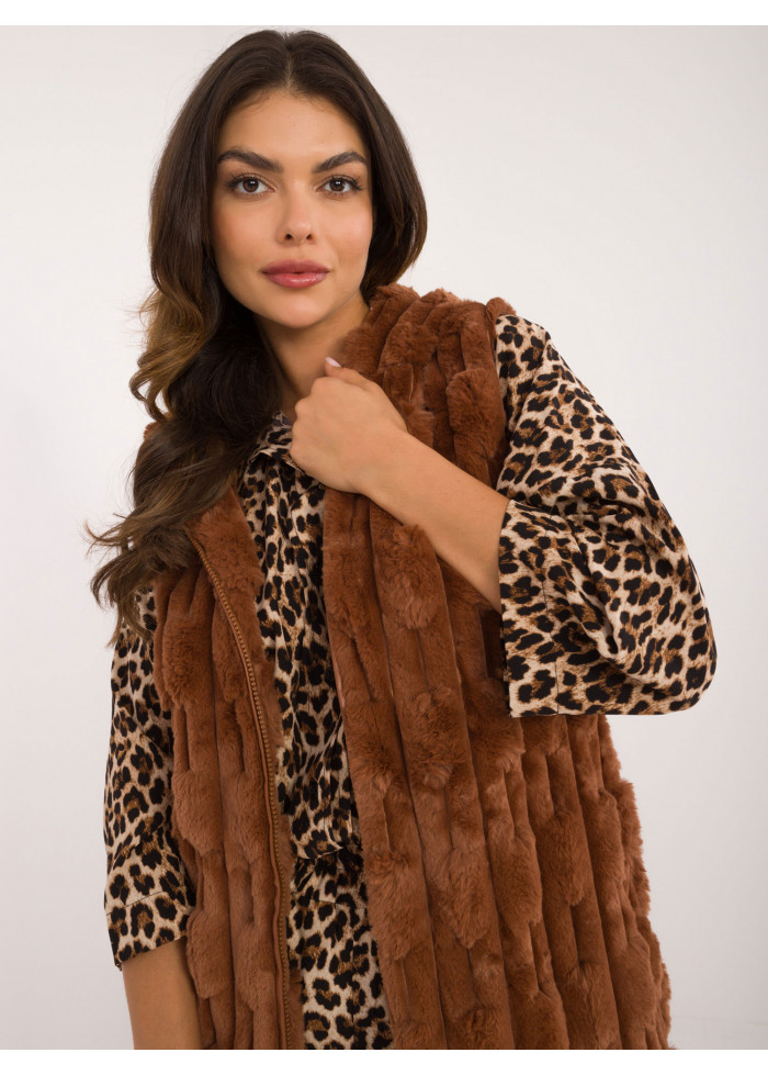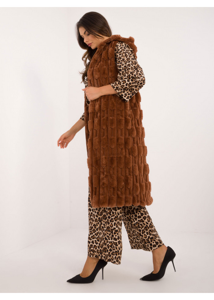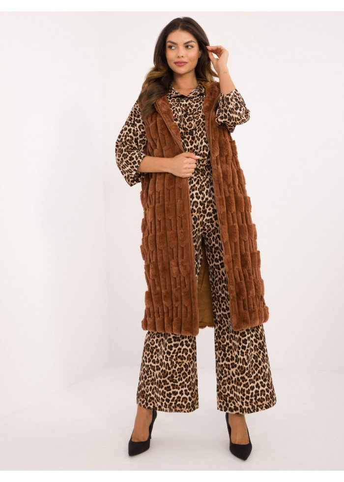 Dlhá dámska vesta s kapucňou, zapínanie na zips, modelka má na sebe veľkosť s/m, miery modelky: výška: 175 cm, prsia: 90 cm, pás: 66 cm, boky: 94 cm, rozmer produktu meraného na plocho, vo veľkosti s/m:, šírka pod plecami: 50 cm, celková dĺžka: 106 cm.