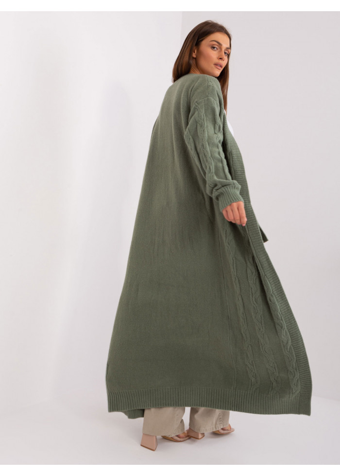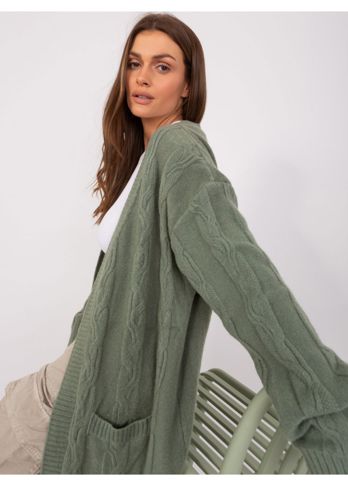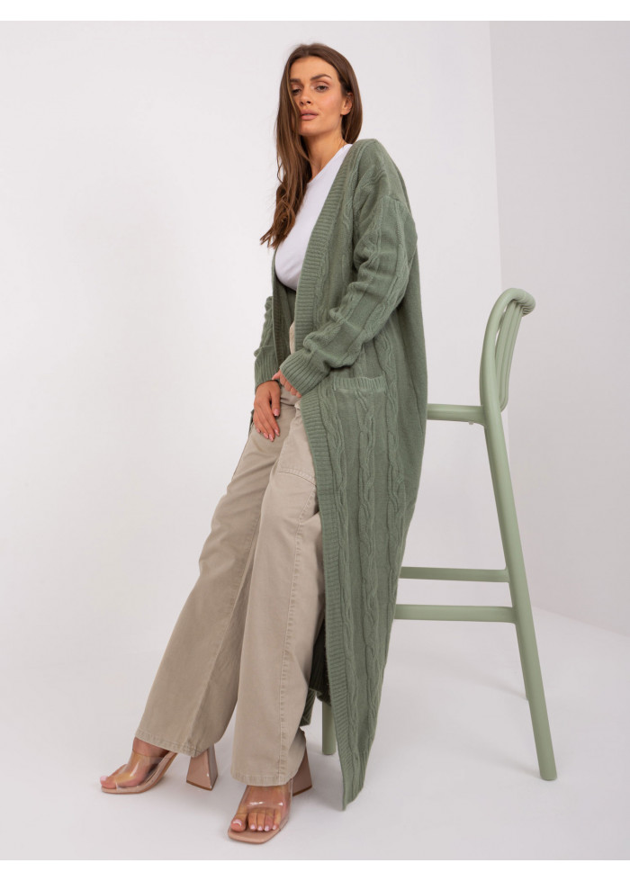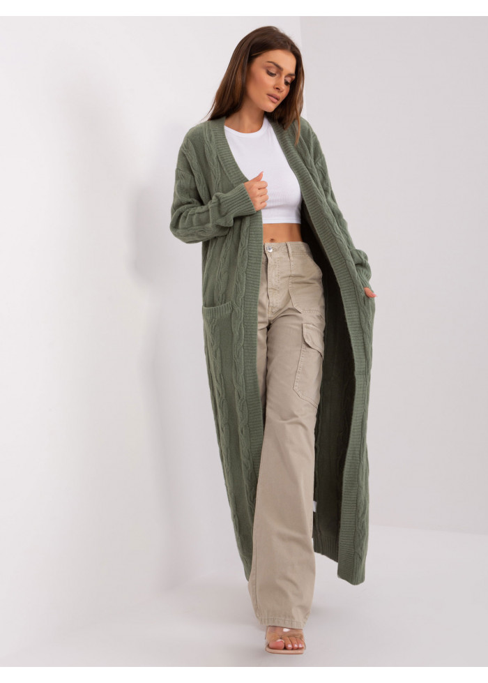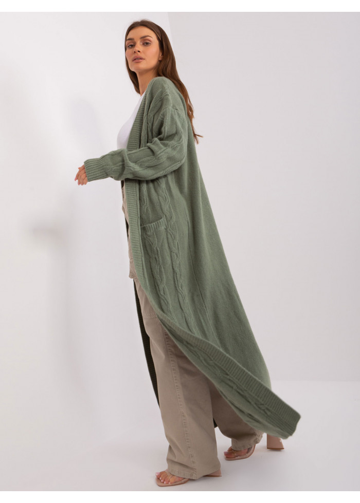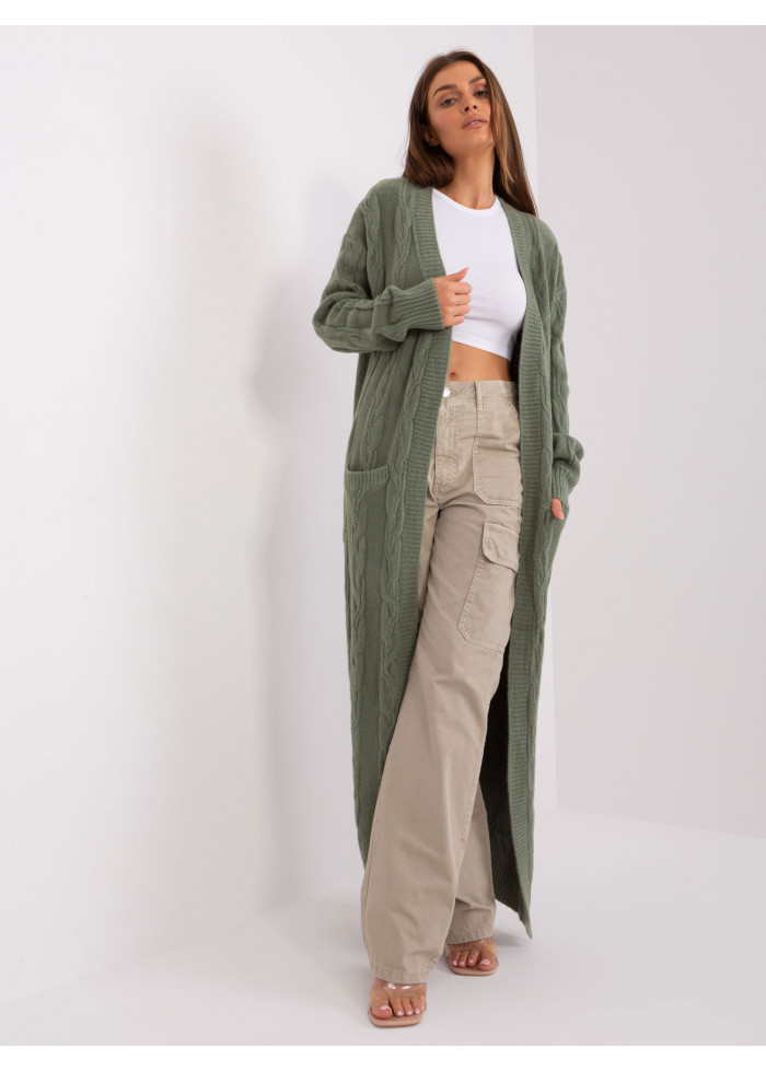 Dlhý kardigán, bez zapínania, 2 vrecká, pletený vzor, univerzálna veľkosť, miery modelky: výška 170 cm, prsia 93 cm, pás 66 cm, boky 93 cm., rozmer produktu meraného na plocho:, šírka pod plecami: 70 cm, dĺžka rukáva: 68 cm, celková dĺžka: 145 cm.