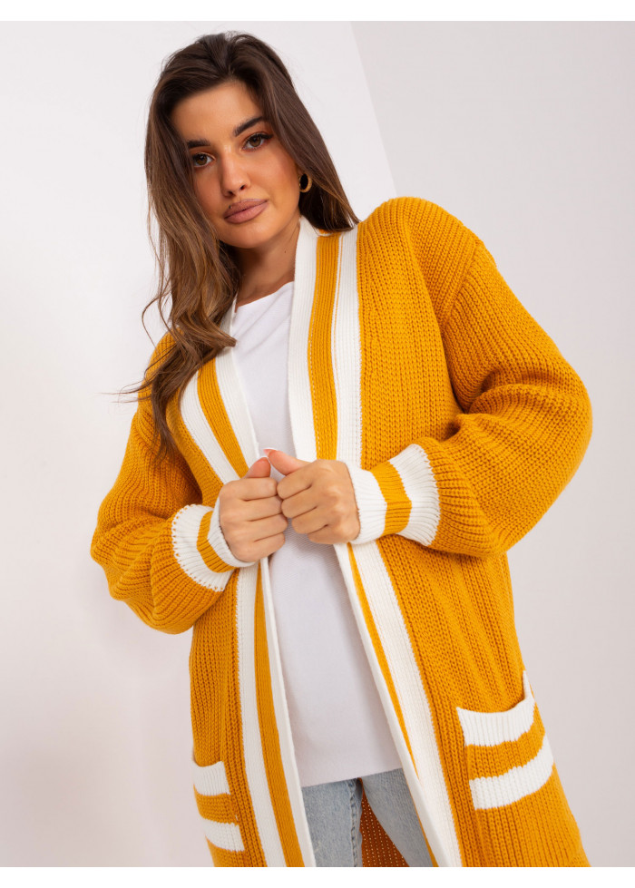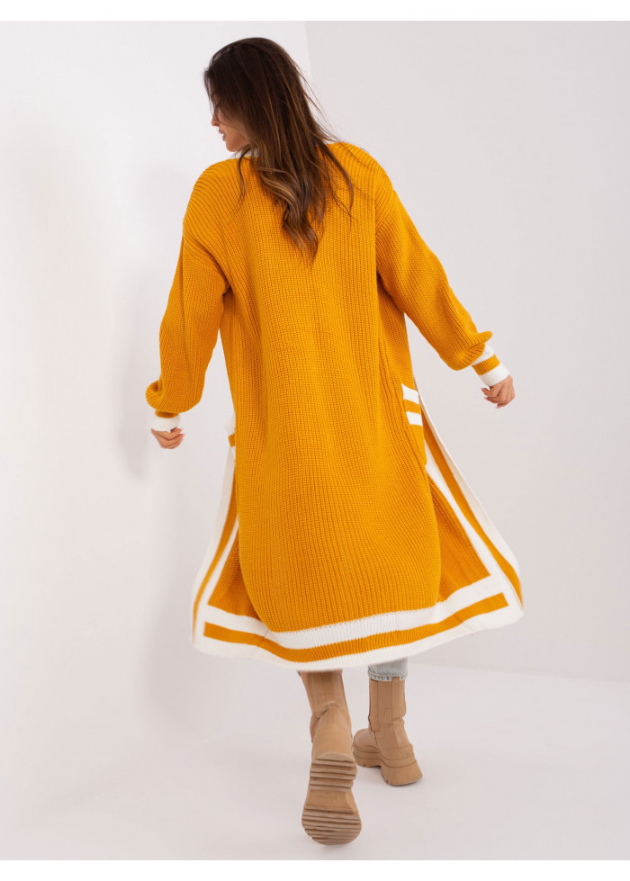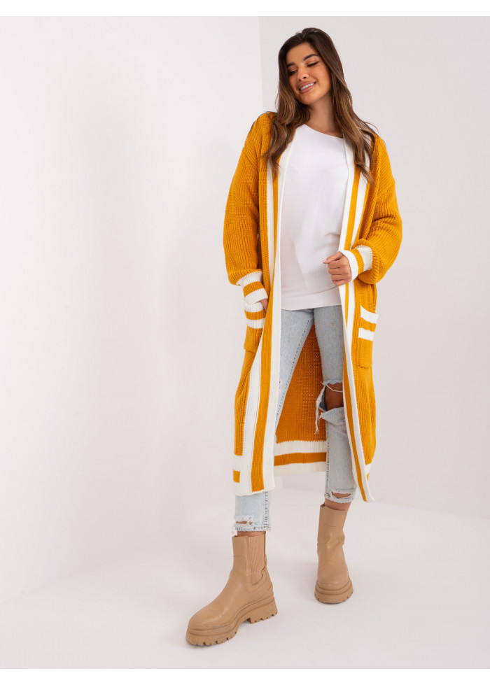 Dlhý kardigán, bez zapínania, 2 vrecká, ozdobné lemovanie, univerzálna veľkosť, miery modelky: výška: 173 cm, prsia: 89 cm, pás: 65 cm, boky: 91 cm, rozmer produktu meraného na plocho:, šírka pod plecami: 70 cm, dĺžka rukáva: 65 cm, celková dĺžka: 119 cm.