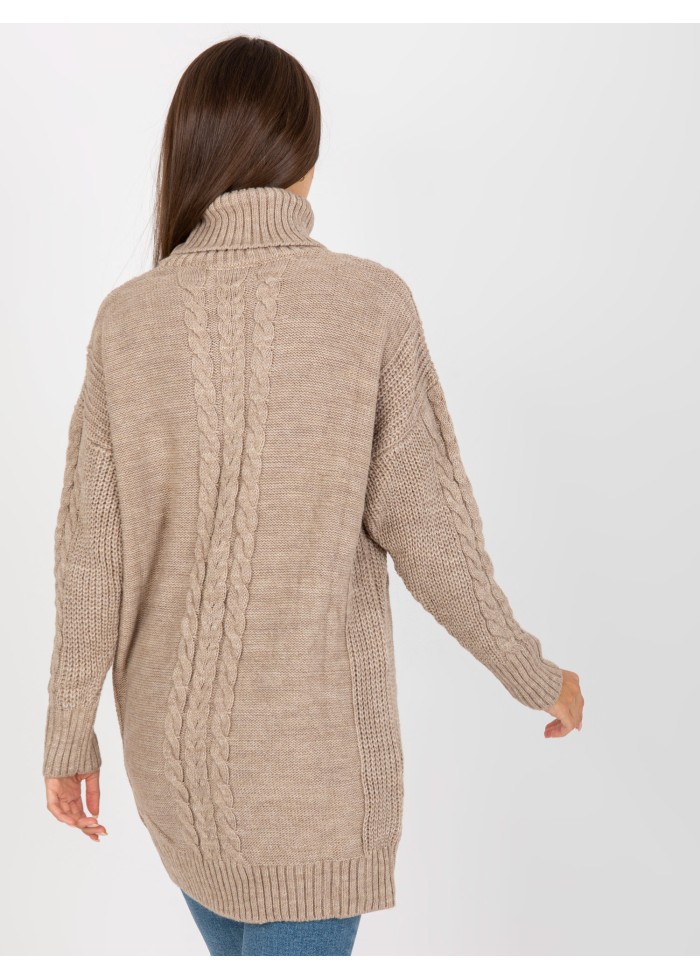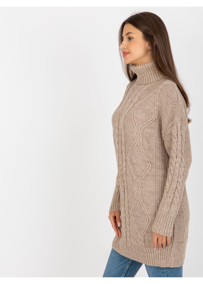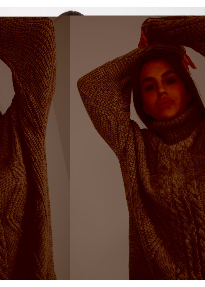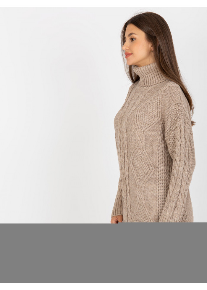 Dámsky predĺžený rolák, svetrové šaty, zaujímavý vzor, pletený dizajn, spôsob prania: pranie v práčke na 30°c, materiál: 100% akryl, univerzálna veľkosť, miery modelky: výška: 172 cm, prsia: 88 cm, pás: 63 cm, boky: 92 cm, rozmer produktu meraného na plocho:, šírka pod plecami: 58 cm, dĺžka rukáva: 55 cm, celková dĺžka: 77 cm.