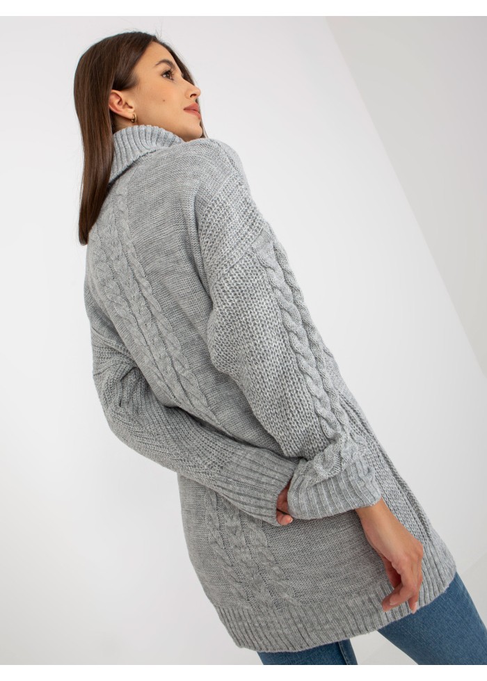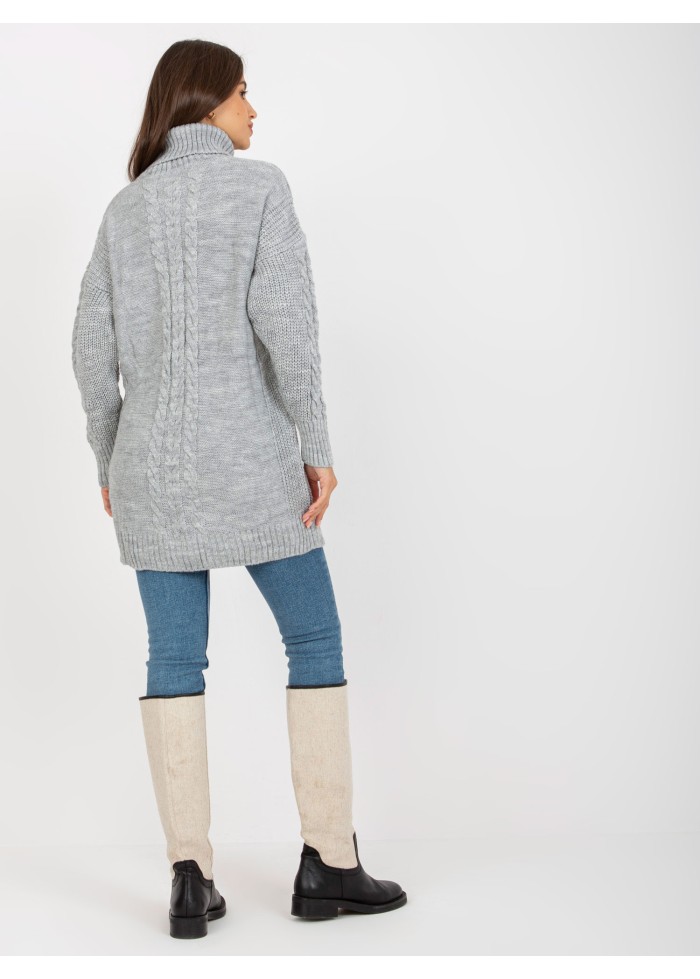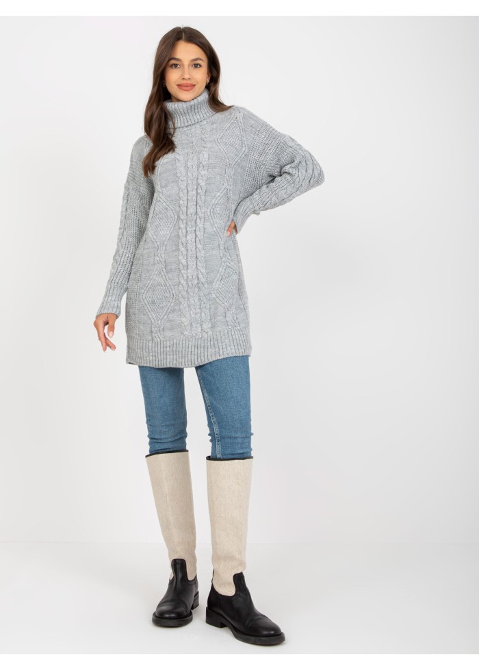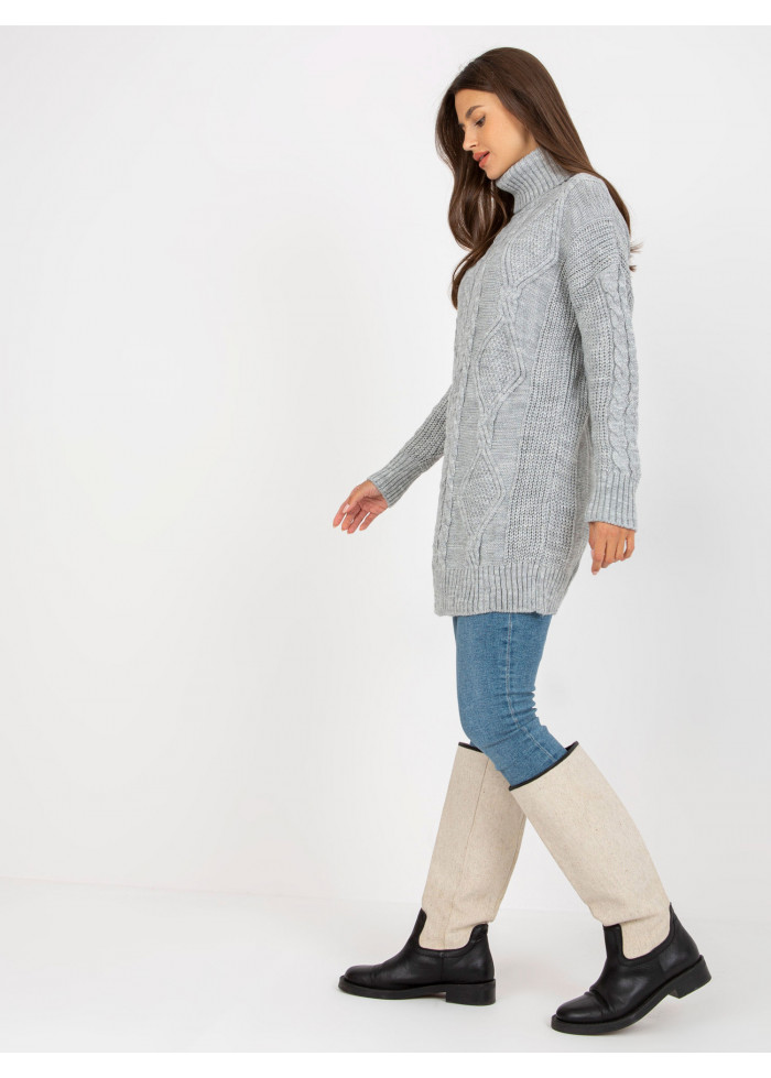 Dámsky predĺžený rolák, svetrové šaty, zaujímavý vzor, pletený dizajn, spôsob prania: pranie v práčke na 30°c, materiál: 100% akryl, univerzálna veľkosť, miery modelky: výška: 172 cm, prsia: 88 cm, pás: 63 cm, boky: 92 cm, rozmer produktu meraného na plocho:, šírka pod plecami: 58 cm, dĺžka rukáva: 55 cm, celková dĺžka: 77 cm.