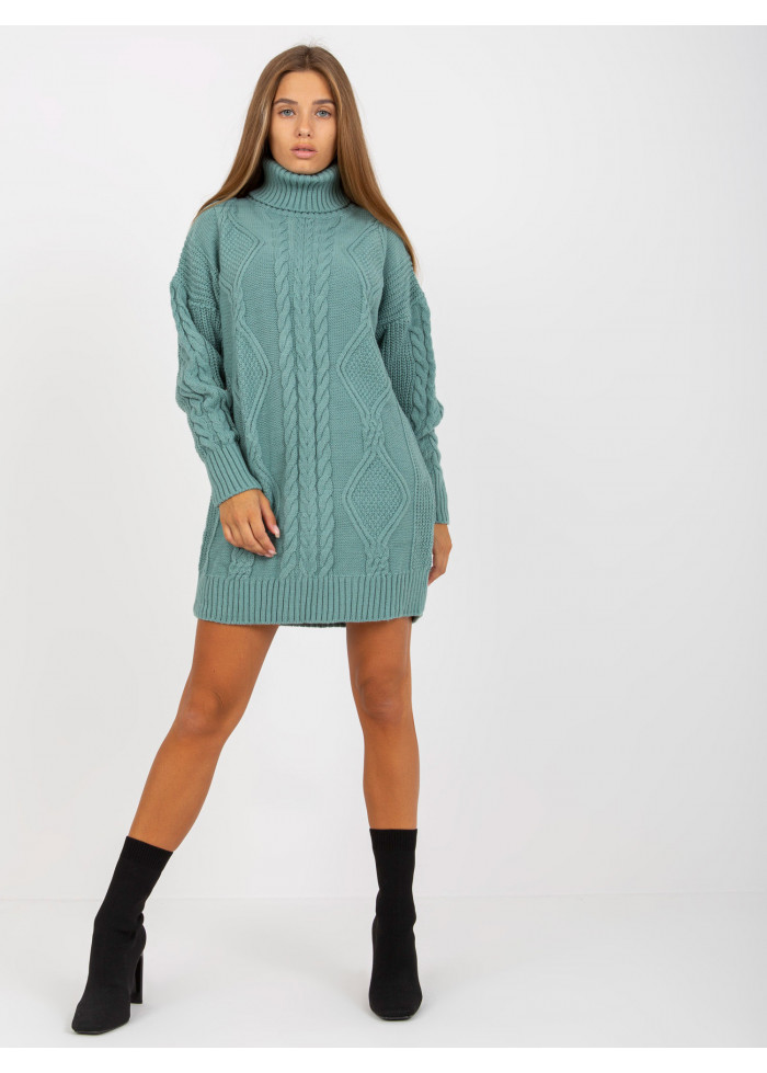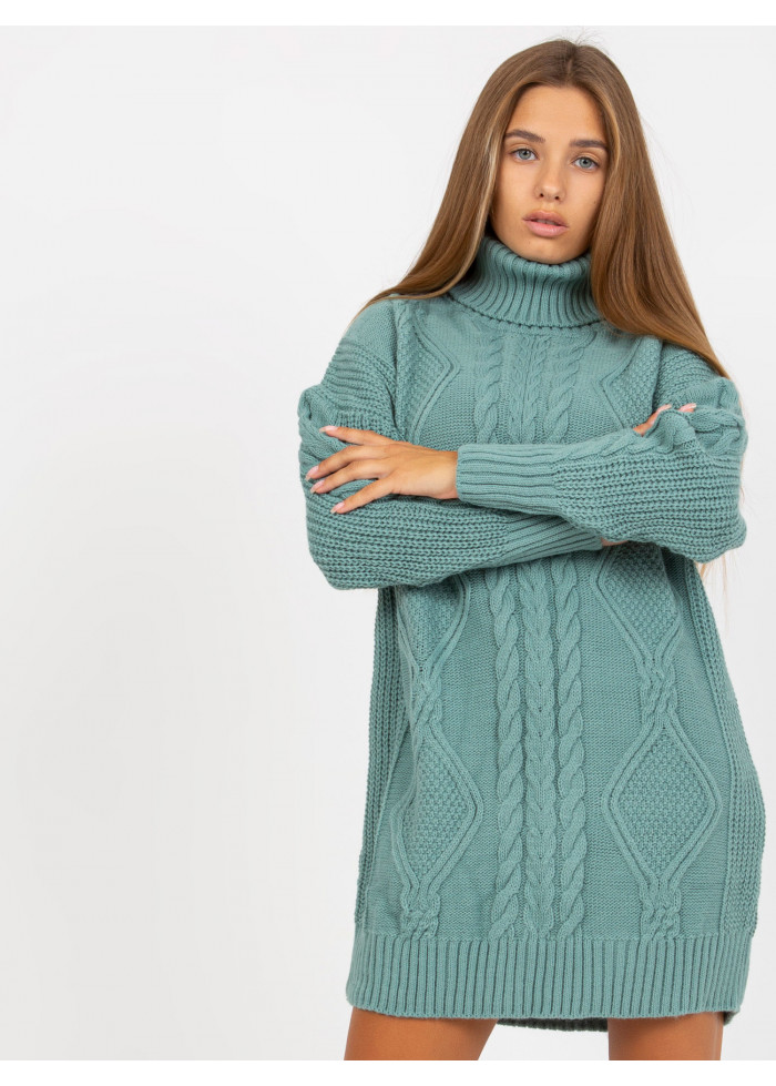 Dámsky predĺžený rolák, svetrové šaty, zaujímavý vzor, pletený dizajn, spôsob prania: pranie v práčke na 30°c, materiál: 100% akryl, univerzálna veľkosť, miery modelky: výška: 172 cm, prsia: 88 cm, pás: 63 cm, boky: 92 cm, rozmer produktu meraného na plocho:, šírka pod plecami: 58 cm, dĺžka rukáva: 55 cm, celková dĺžka: 77 cm.