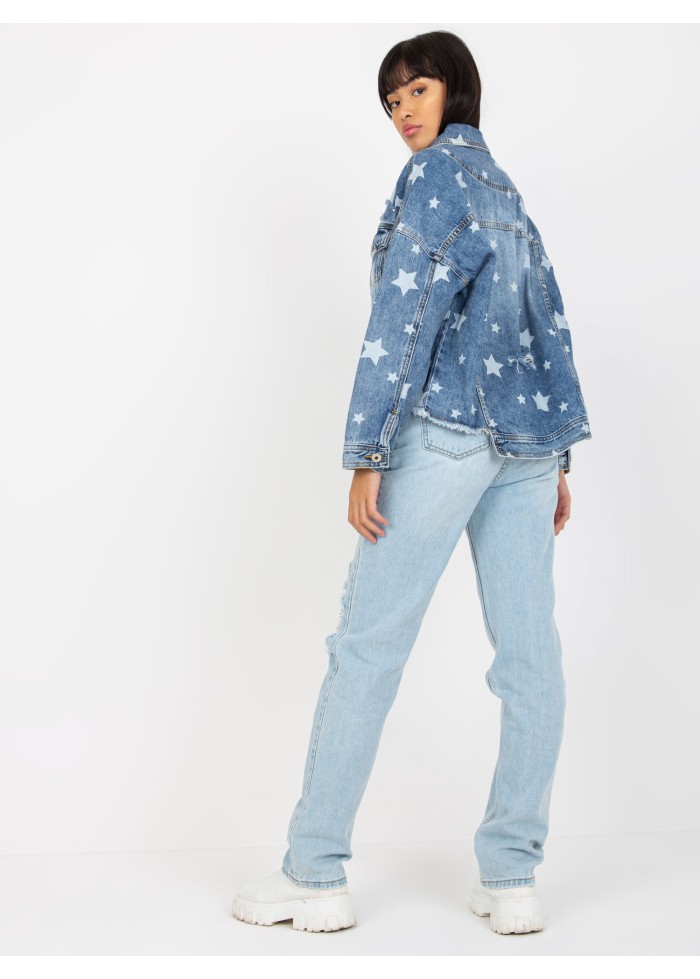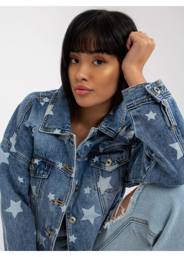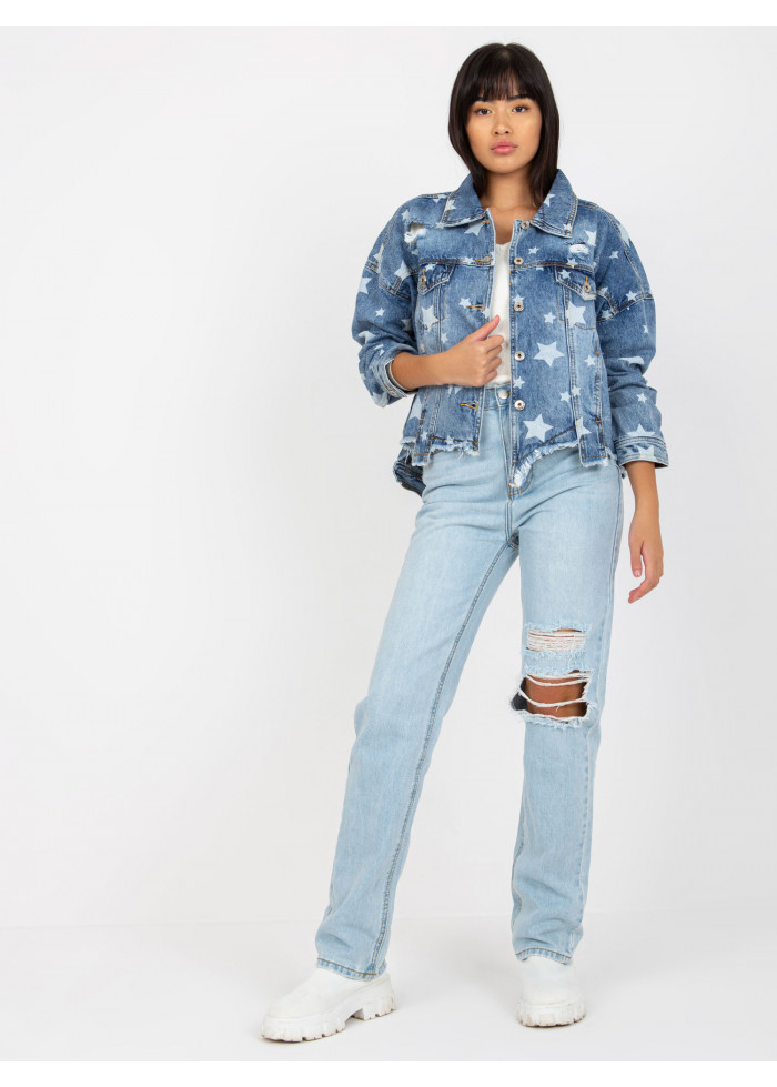 Dámska džínsová bunda, potlač hviezd po celej bunde, zapínanie na gombíky, 2 vrecká, 2 náprsné vrecká s gombíkmi, moderný otrhaný vzhľad, spôsob prania: pranie v práčke na 30°c, materiál: 100% bavlna, modelka má na sebe veľkosť s/m, miery modelky: výška: 167 cm, prsia: 82 cm, pás: 64 cm, boky: 91 cm, rozmer produktu meraného na plocho, vo veľkosti s/m:, šírka pod plecami: 61 cm, dĺžka rukáva: 50 cm, celková dĺžka: 56 cm.