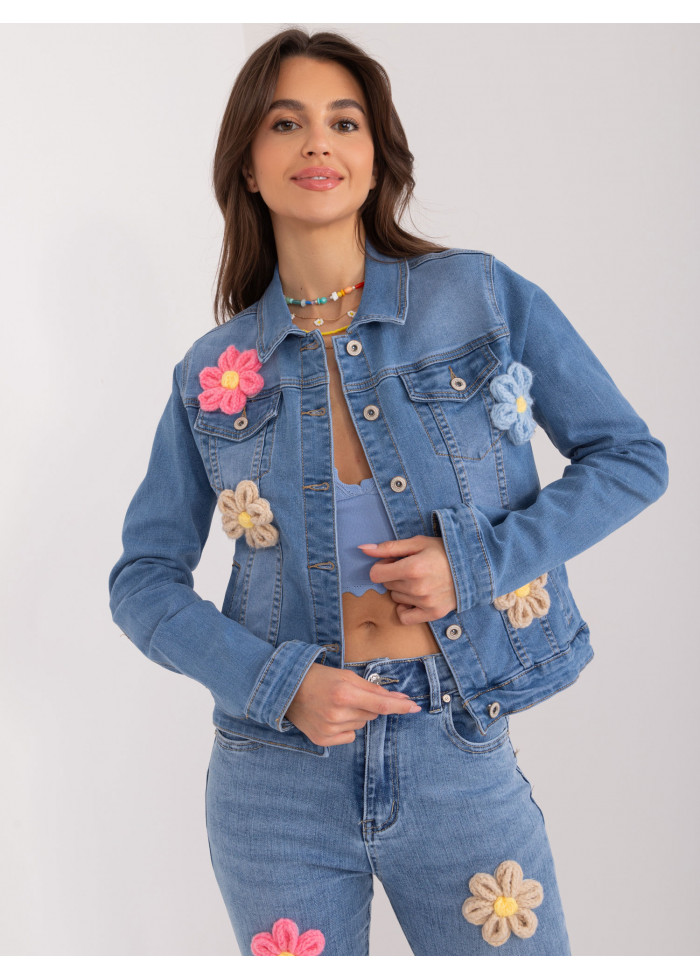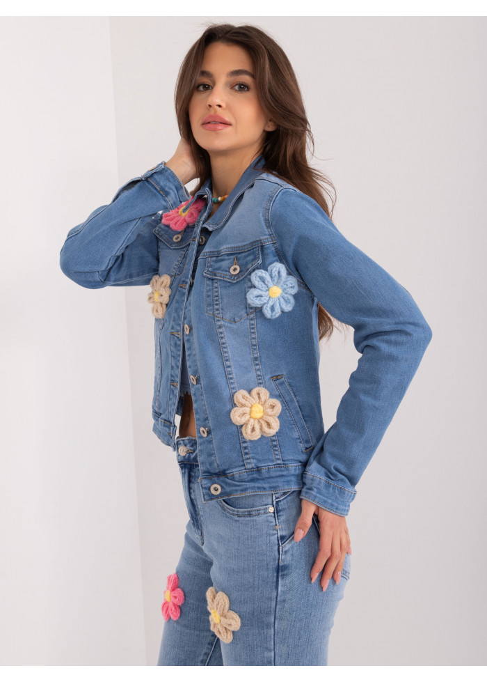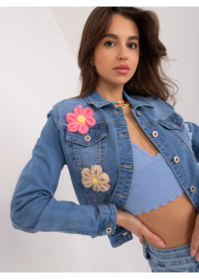 Dámska džínsová bunda, klasický strih, zapínanie na gombíky, 2 náprsné vrecká, ozdobné aplikácie, modelka má na sebe veľkosť s, miery modelky: výška: 172 cm, prsia: 88 cm, pás: 63 cm, boky: 92 cm, rozmer produktu meraného na plocho, vo veľkosti s:, šírka pod plecami: 48 cm, dĺžka rukáva: 59 cm, celková dĺžka: 52 cm.