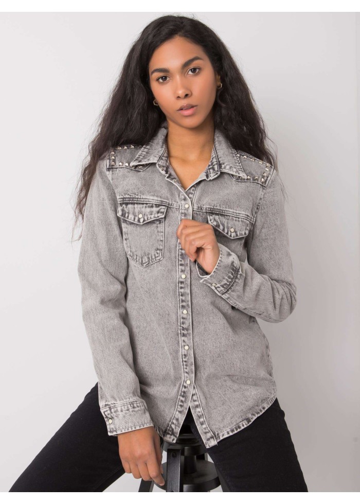 Dámska džínsová košeľa, dlhé rukávy, zapínanie na patenty, 2 náprsné vrecká s gombíkmi, ozdobné cvoky, klasický strih, materiál: 100% bavlna, spôsob prania: pranie v práčke na 30°c, modelka má na sebe veľkosť s. rozmery modelky: výška 175 cm, prsia 85 cm, pás 65 cm, boky 89 cm., rozmery košele vo veľkosti s merané naplocho: šírka pod pazuchami - 44 cm, celková dĺžka - 62 cm, dĺžka rukáva - 60 cm.