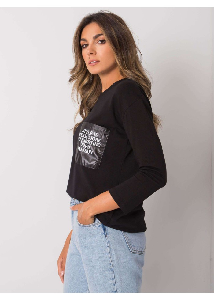 Dámske tričko s náprsným vreckom, ozdobná potlač, zadná časť dlhšia ako predná, 3/4 rukávy, okrúhly dekolt pri krku, materiál: 90% bavlna, 10% elastan, spôsob prania: pranie v práčke na 30°c, modelka má na sebe veľkosť s. rozmery modelky: výška 175 cm, prsia 85 cm, pás 65 cm, boky 89 cm., rozmery blúzky vo veľkosti s merané naplocho: šírka v podpazuší - 49 cm, celková dĺžka - 66 cm, dĺžka rukáva - 44 cm.