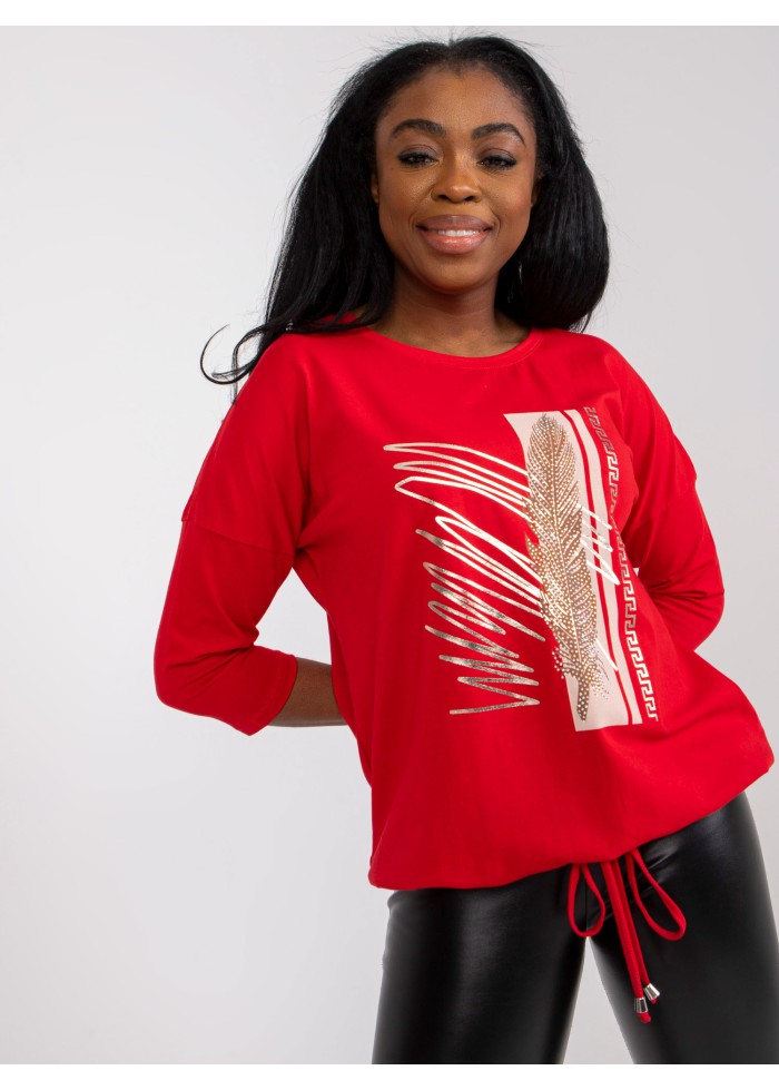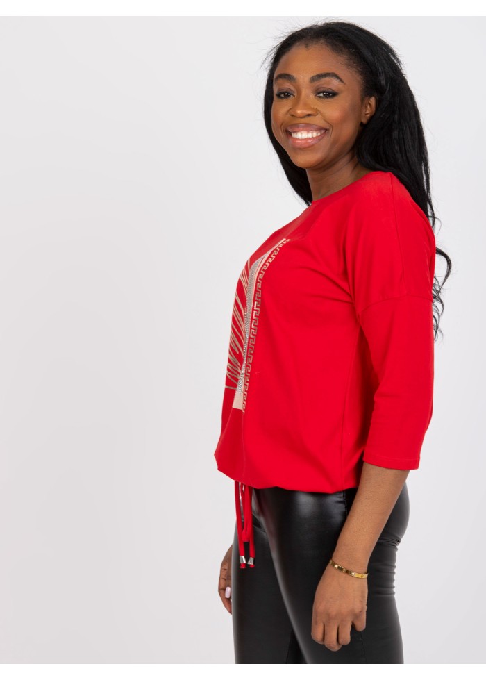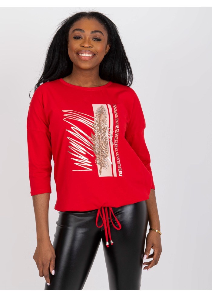 Dámské elegantné tričko, ozdobná potlač, okrúhly výstrih, 3/4 rukávy, možnosť stiahnutia šnúrkou v spodnej časti, materiál: 90% bavlna, 10% elastan, spôsob prania: pranie v práčke na 30°c, modelka má na sebe veľkosť s/m. rozmery modelky: výška 170 cm, prsia 93 cm, pás 66 cm, boky 93 cm., rozmery blúzky vo veľkosti s/m merané naplocho: šírka v podpazuší - 58 cm, celková dĺžka - 65 cm, dĺžka rukáva - 41 cm..