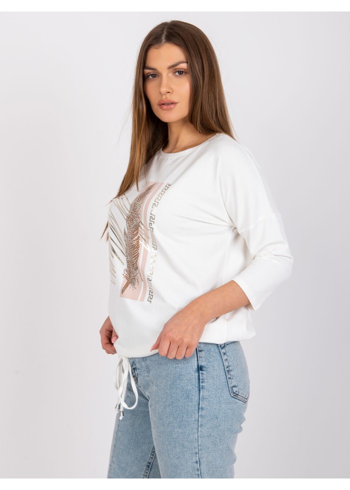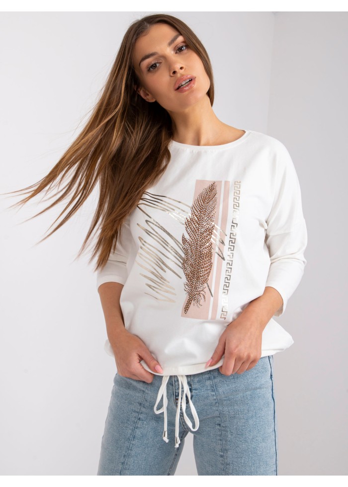 Dámské elegantné tričko, ozdobná potlač, okrúhly výstrih, 3/4 rukávy, možnosť stiahnutia šnúrkou v spodnej časti, materiál: 90% bavlna, 10% elastan, spôsob prania: pranie v práčke na 30°c, modelka má na sebe veľkosť s/m. rozmery modelky: výška 170 cm, prsia 93 cm, pás 66 cm, boky 93 cm., rozmery blúzky vo veľkosti s/m merané naplocho: šírka v podpazuší - 58 cm, celková dĺžka - 65 cm, dĺžka rukáva - 41 cm..