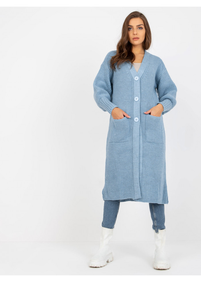 Dámsky kardigán, výstrih do v, zapínanie na gombíky, 2 vrecká, rebrovaný úplet, vysoké náplety na rukávoch, univerzálna veľkosť, miery modelky: výška: 163 cm, prsia: 86 cm, pás: 56 cm, boky: 88 cm, rozmer produktu meraného na plocho:, šírka pod plecami: 64 cm, dĺžka rukáva: 59 cm, celková dĺžka: 100 cm.