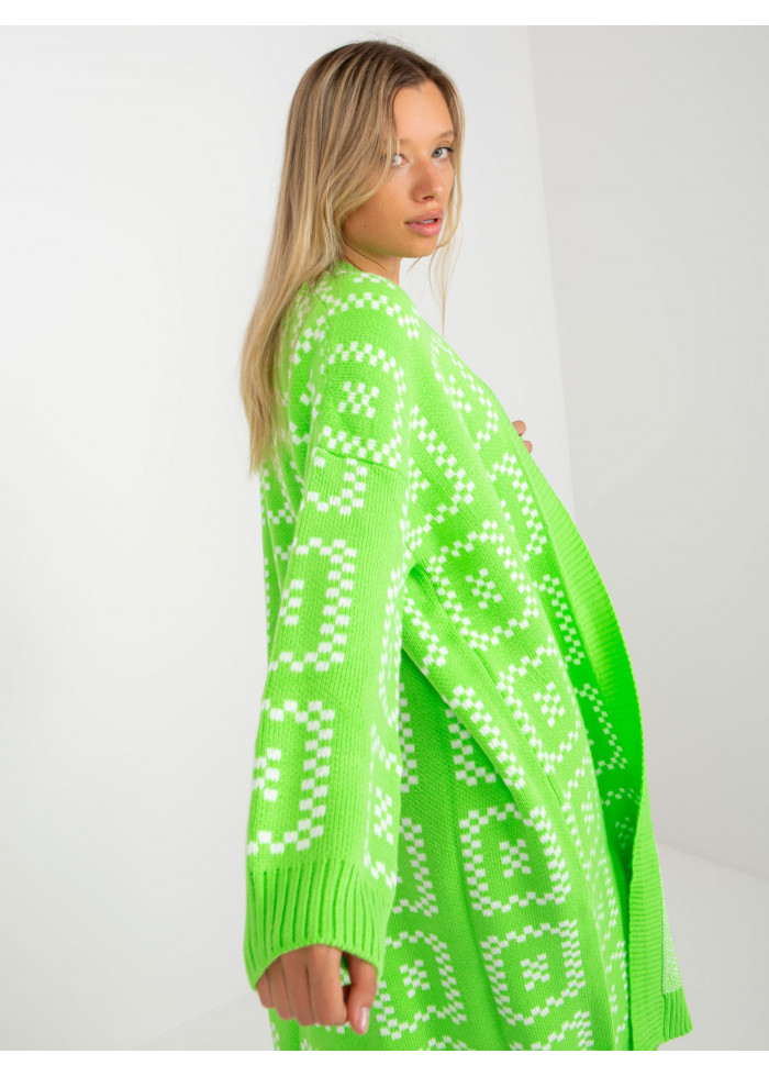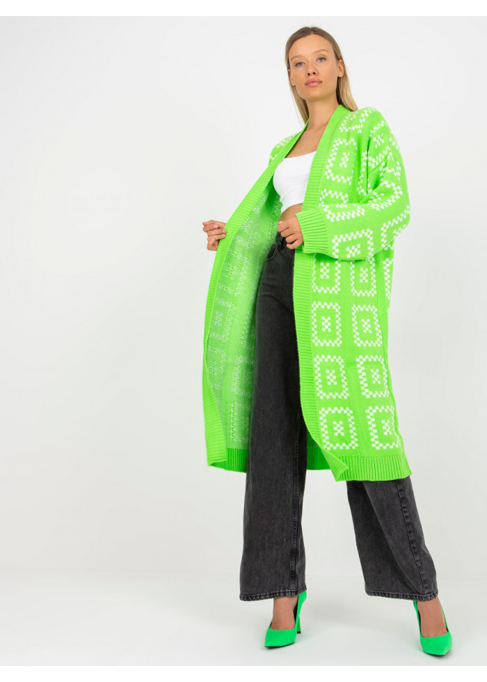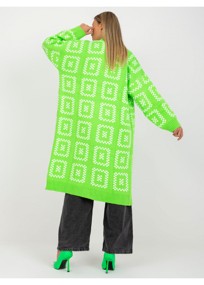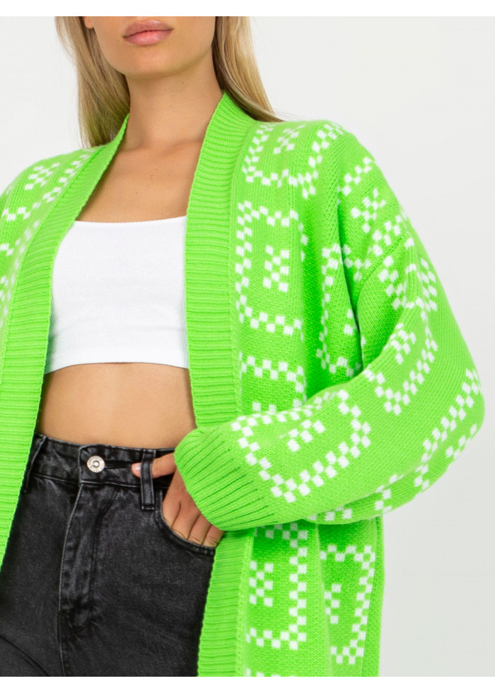 Dámsky vzorovaný kardigán, módny predlžený strih, bez zapínania, spôsob prania: pranie v práčke na 30°c, materiál: 100% akryl, univerzálna veľkosť, miery modelky: výška: 172 cm, prsia: 88 cm, pás: 63 cm, boky: 92 cm, rozmer produktu meraného na plocho:, šírka pod plecami: 67 cm, dĺžka rukáva: 58 cm, celková dĺžka: 108 cm.