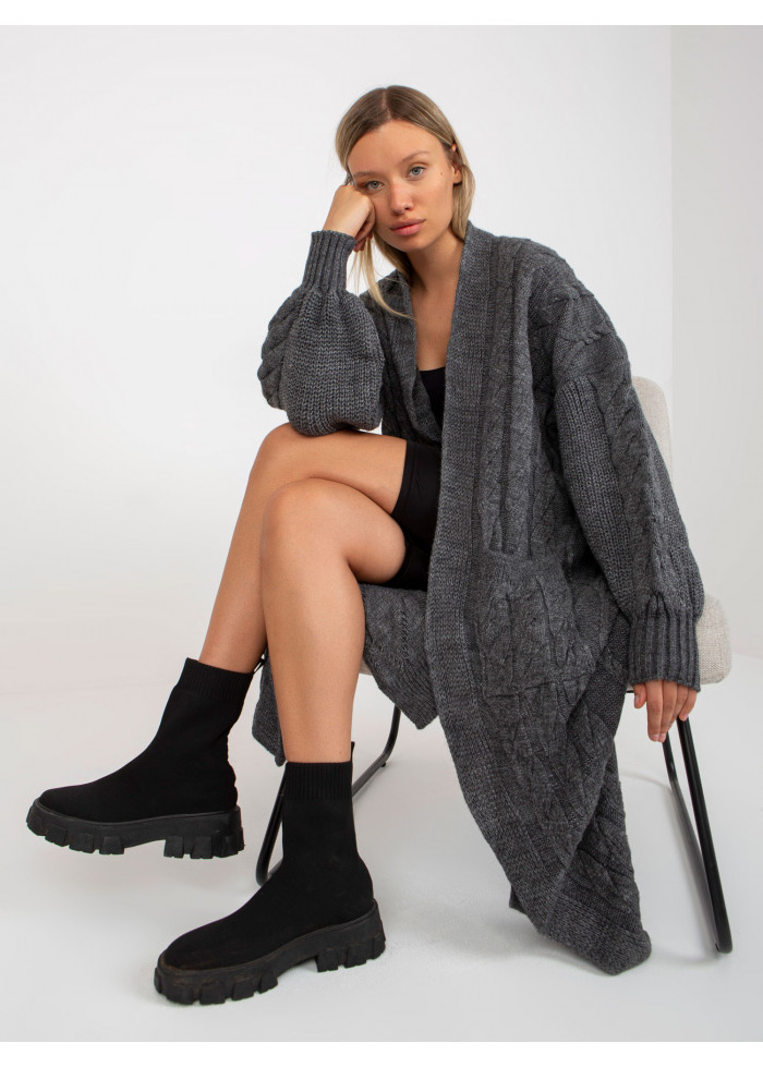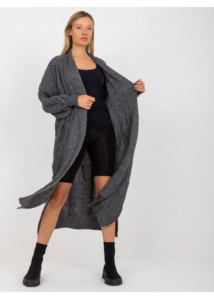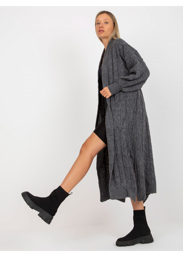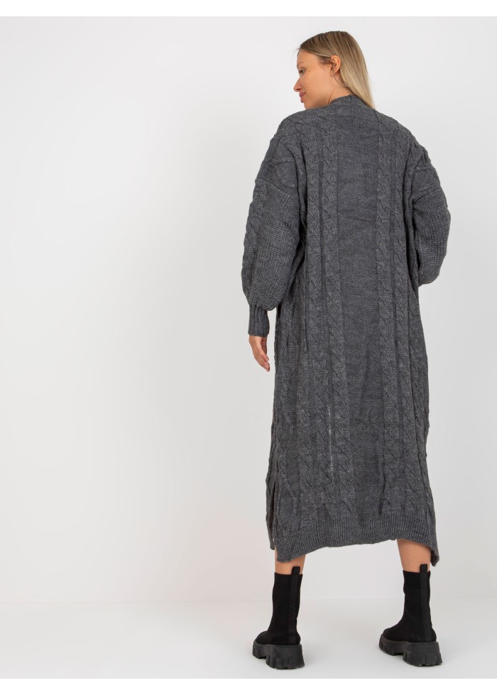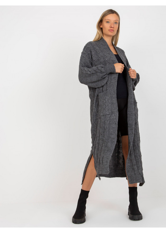 Dámsky dlhý pletený kardigán, 2 vrecká, rozparky na bokoch, univerzálna veľkosť, miery modelky: výška: 178 cm, prsia: 89 cm, pás: 65 cm, boky: 95 cm, rozmer produktu meraného na plocho:, šírka pod plecami: 69 cm, dĺžka rukáva: 61 cm, celková dĺžka: 110 cm.