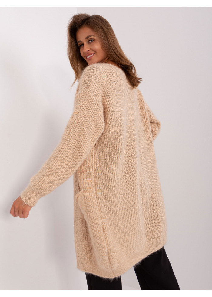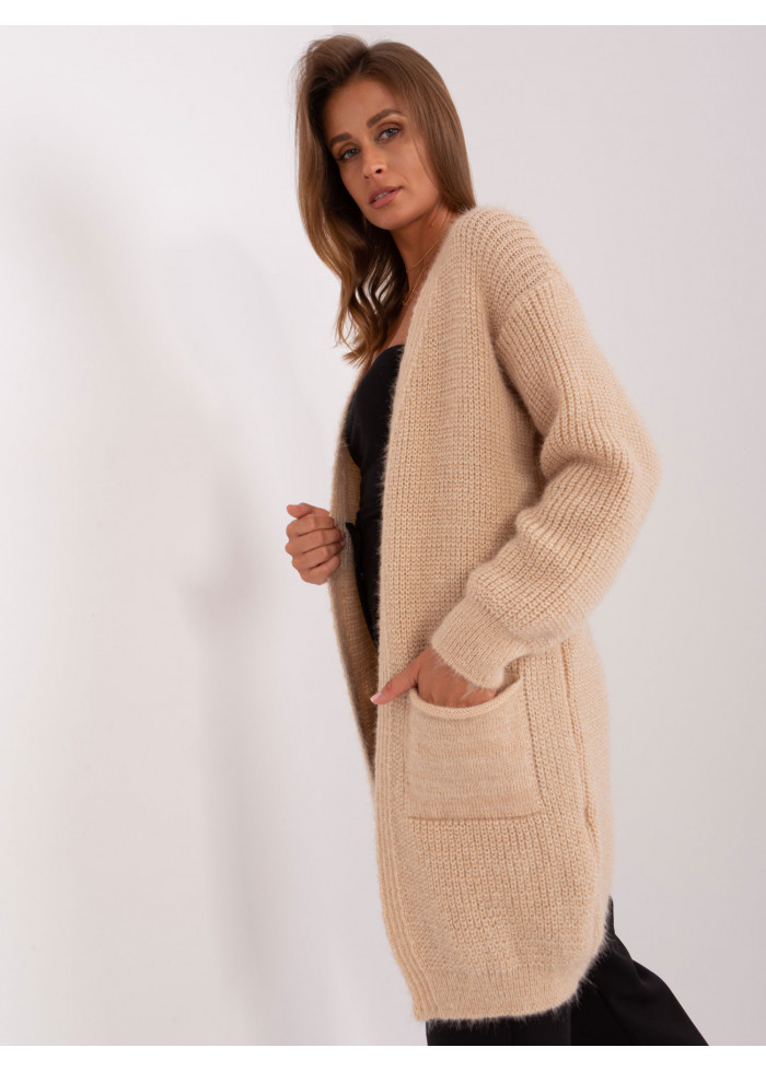 Dámsky kardigán, bez zapínania, 2 vrecká, jemný chĺpok, dlhý rukáv, univerzálna veľkosť, miery modelky: výška 171 cm, prsia 84 cm, pás 60 cm, boky 88 cm., rozmer produktu meraného na plocho:, šírka pod plecami: 70 cm, dĺžka rukáva: 60 cm, celková dĺžka: 90 cm.