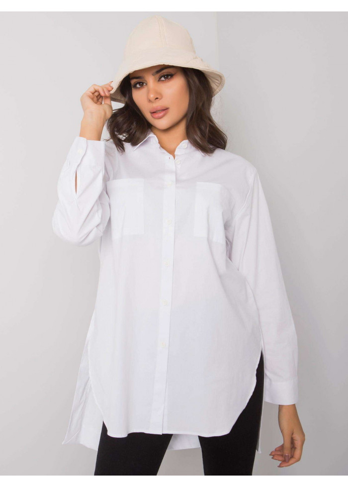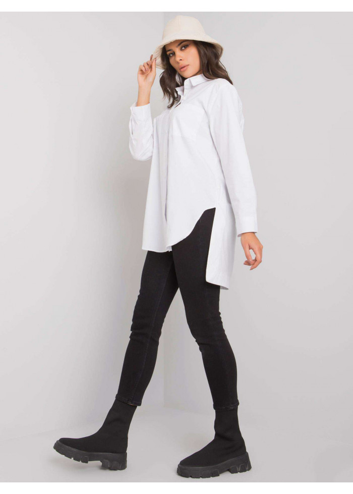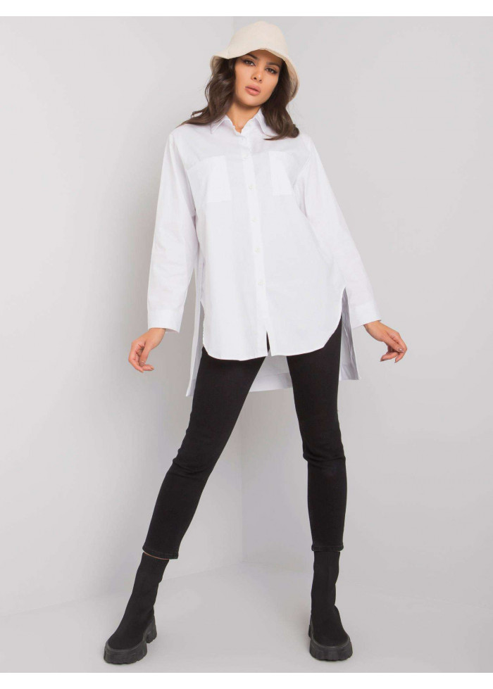 Dámska asymetrická košeľa, zapínanie na gombíky, rozparky po bokoch, 2 náprsné vrecká, spôsob prania: pranie v práčke na 30°c, materiál: 97% bavlna, 3% elastan, univerzálna veľkosť, miery modelky: výška 175 cm, prsia 84 cm, pás 62 cm, boky 93 cm., rozmer produktu meraného na plocho:, šírka pod plecami: 58 cm, dĺžka rukáva: 61 cm, celková dĺžka: 87 cm.