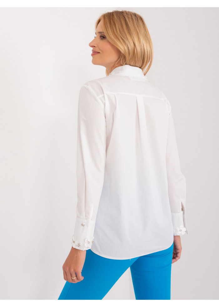 Dámska košeľa s dlhým rukávom, zapínanie na gombíky, ozdobné gombíky, ozdobné aplikácie na goliery a rukávoch, klasický strih, modelka má na sebe veľkosť s/m, miery modelky: výška: 175 cm, prsia: 90 cm, pás: 66 cm, boky: 94 cm, rozmer produktu meraného na plocho, vo veľkosti s/m:, šírka pod plecami: 49 cm, dĺžka rukáva: 57 cm, celková dĺžka: 61 cm.