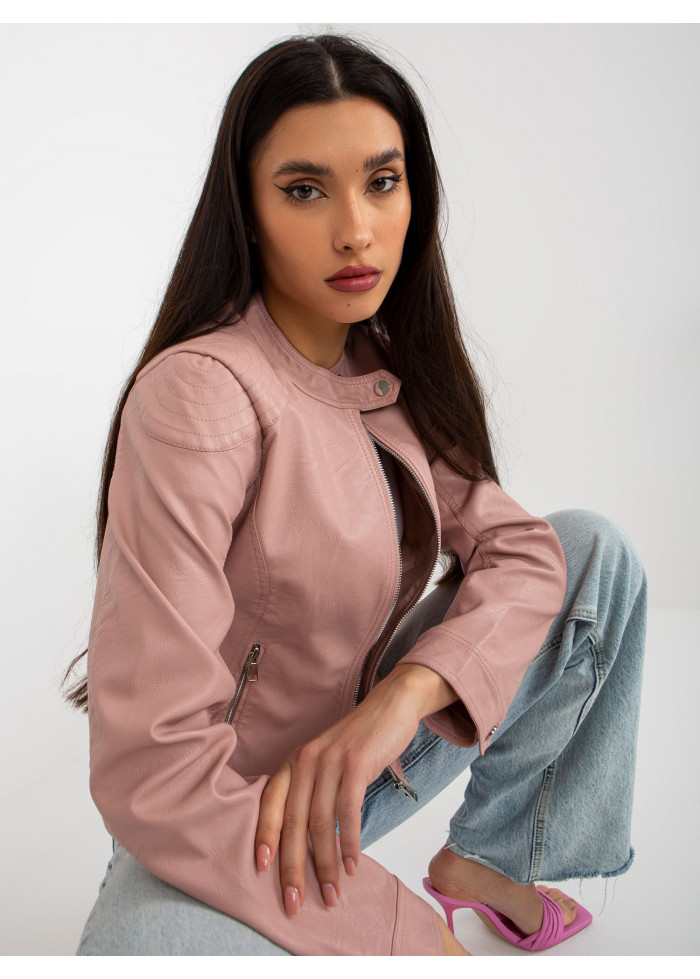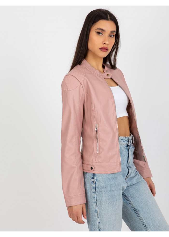 Púdrovo ružová koženková bunda