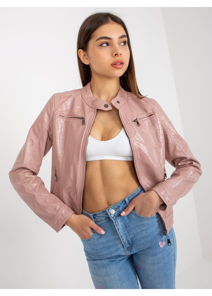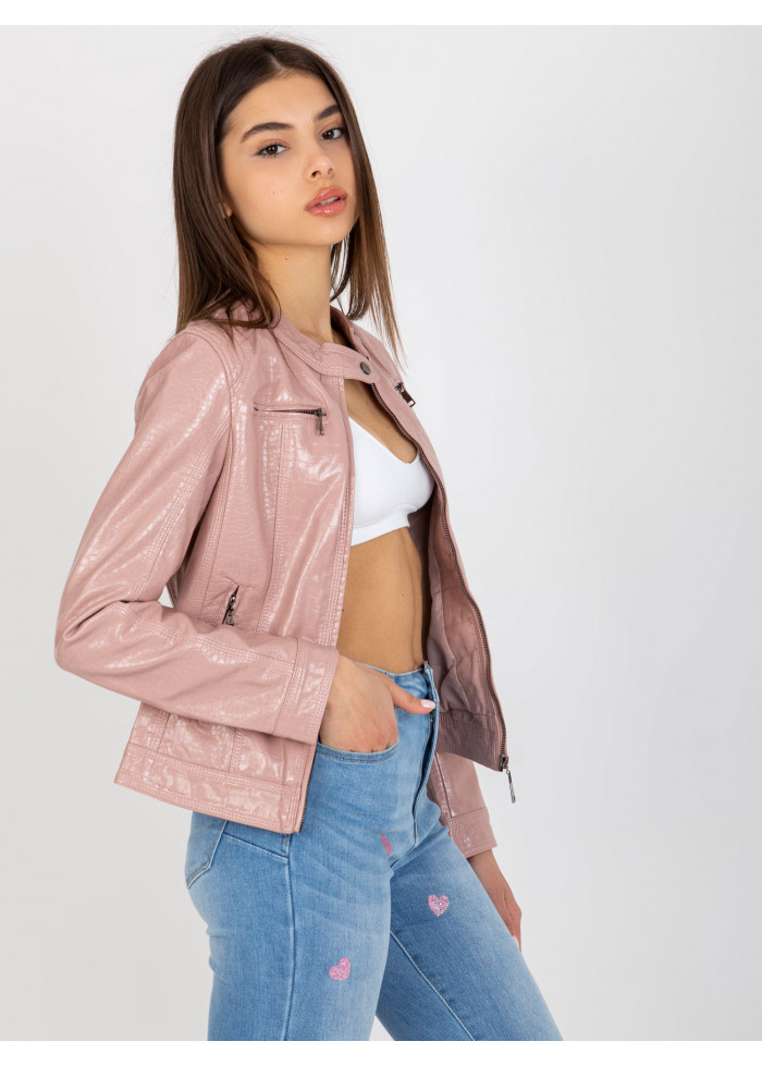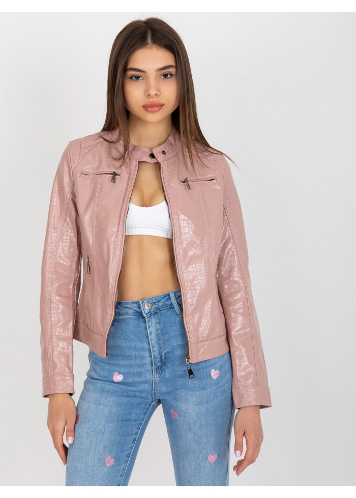 Púdrovo ružová koženková bunda