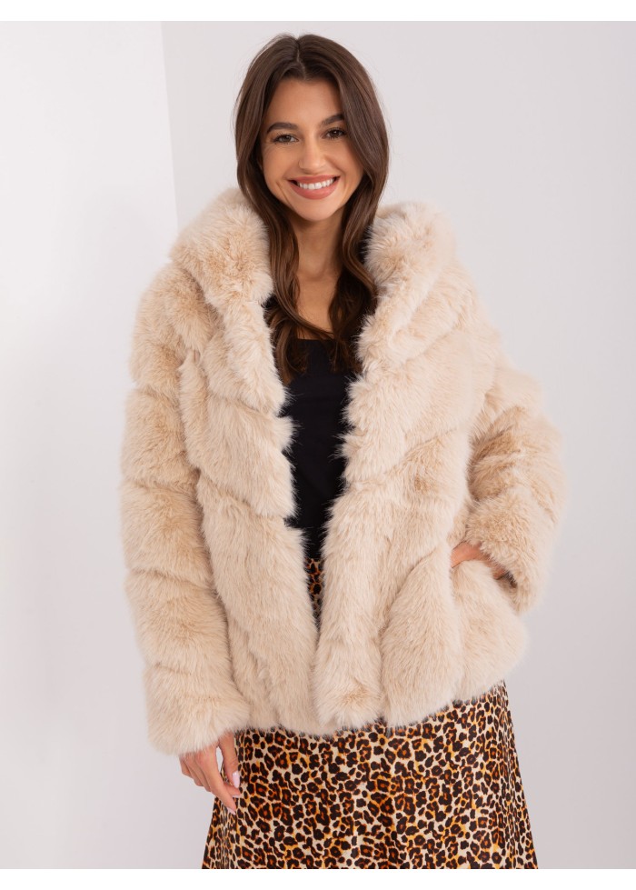 Béžovo hnedá kožušinová bunda