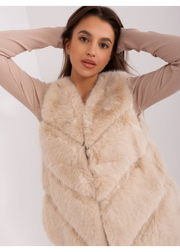 Kožušinová vesta, prešívaná vesta, bez zapínania, asymetrický strih, modelka má na sebe veľkosť s/m, miery modelky: výška: 173 cm, prsia: 89 cm, pás: 65 cm, boky: 91 cm, rozmer produktu meraného na plocho, vo veľkosti s/m:, šírka pod plecami: 49 cm, celková dĺžka: 57 cm.