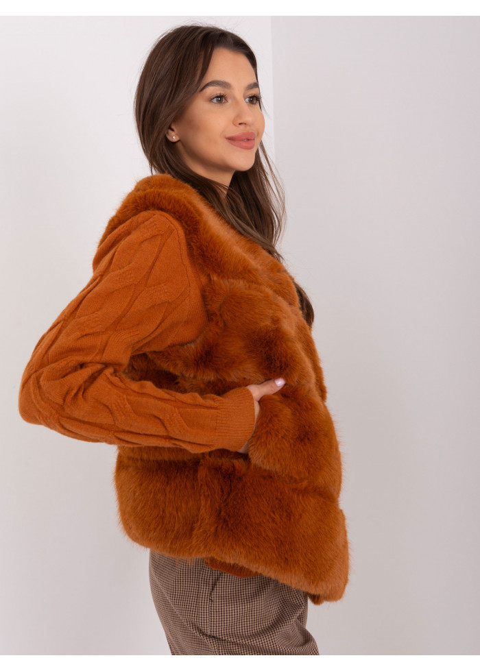 Kožušinová vesta, prešívaná vesta, bez zapínania, asymetrický strih, modelka má na sebe veľkosť s/m, miery modelky: výška: 173 cm, prsia: 89 cm, pás: 65 cm, boky: 91 cm, rozmer produktu meraného na plocho, vo veľkosti s/m:, šírka pod plecami: 49 cm, celková dĺžka: 57 cm.