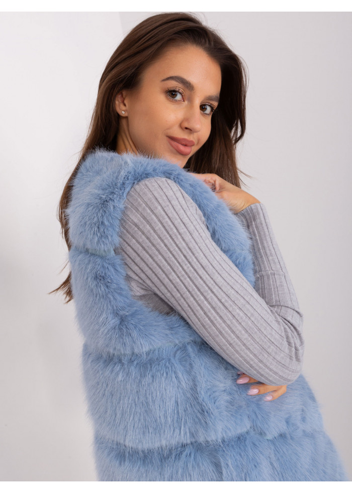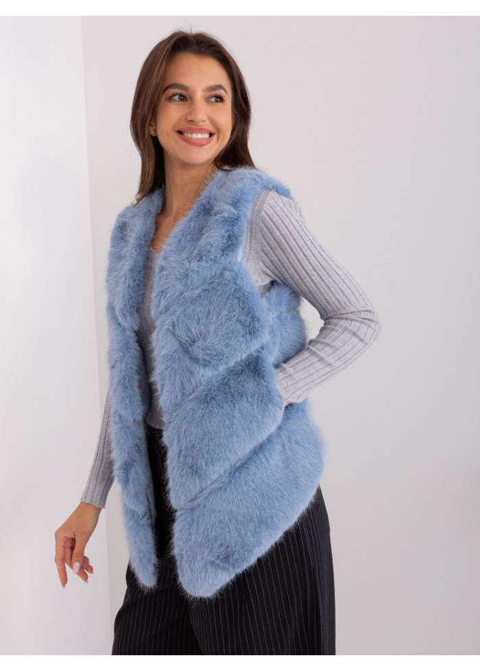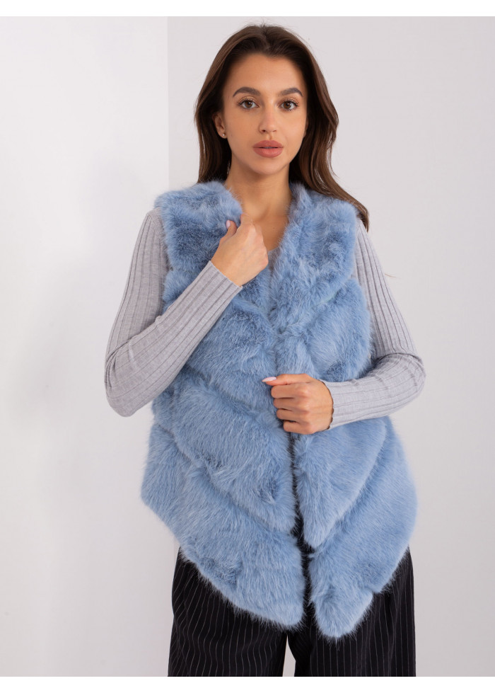Kožušinová vesta, prešívaná vesta, bez zapínania, asymetrický strih, modelka má na sebe veľkosť s/m, miery modelky: výška: 173 cm, prsia: 89 cm, pás: 65 cm, boky: 91 cm, rozmer produktu meraného na plocho, vo veľkosti s/m:, šírka pod plecami: 49 cm, celková dĺžka: 57 cm.