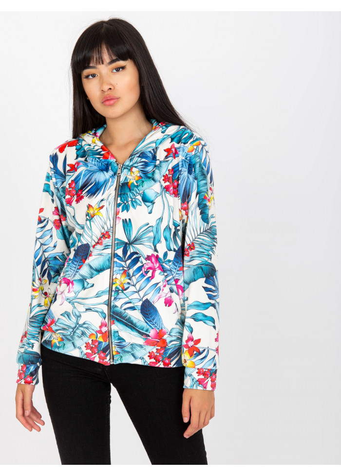 Dámska kvetovaná mikina s kapucňou, zapínanie na zips, jednoduchý strih, 2 vrecká, lémy na koncoch rukávov a v spodnej časti, spôsob prania: pranie v práčke na 30°c, materiál: 90% viskóza, 10% elastan, modelka má na sebe veľkosť s/m, miery modelky: výška: 178 cm, prsia: 82 cm, pás: 61 cm, boky: 88 cm, rozmer produktu meraného na plocho, vo veľkosti s/m:, šírka pod plecami: 55 cm, dĺžka rukáva: 56 cm, celková dĺžka: 58 cm.