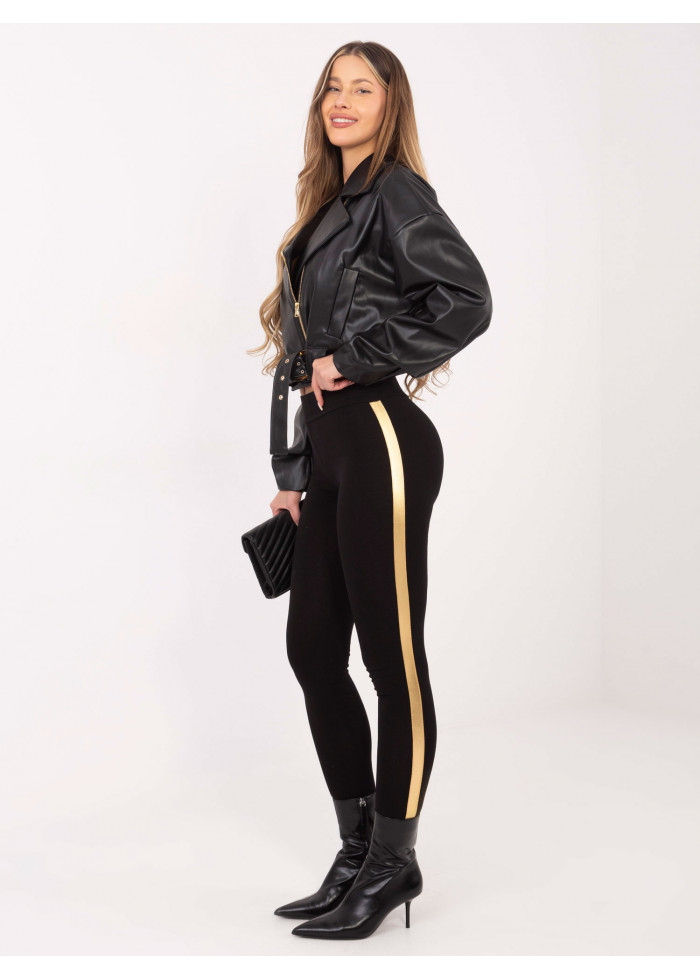 Rue paris, bavlnené legíny, legíny s lampasmi, spôsob prania: pranie v práčke na 30°c, materiál: 90% bavlna, 10% elastan, modelka má na sebe veľkosť s, miery modelky: výška: 174 cm, prsia: 84 cm, pás: 61 cm, boky: 93 cm.