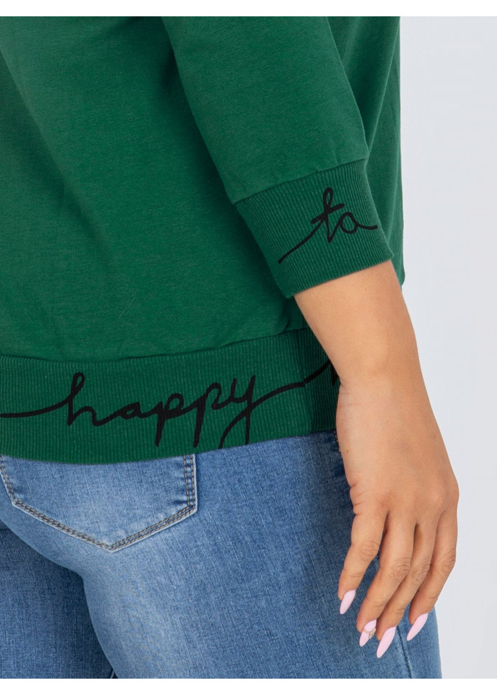 Basic mikina, okrúhly výstrih, 3/4 rukávy s lémom, lém na spodnej časti, ozdobná potlač, voľnejší strih, spôsob prania: pranie v práčke na 30°c, materiál: 90% bavlna, 10% elastan, modelka má na sebe univerzálnu veľkosť, miery modelky: výška 161 cm, prsia 84 cm, pás 64 cm, boky 87 cm., rozmer produktu meraného na plocho:, šírka pod plecami: 59 cm, celková dĺžka: 63 cm, dĺžka rukávov: 49 cm.