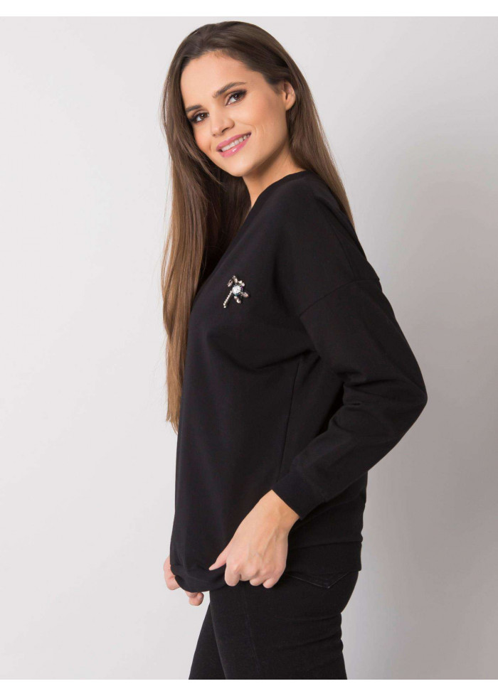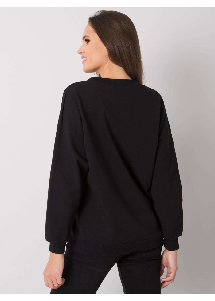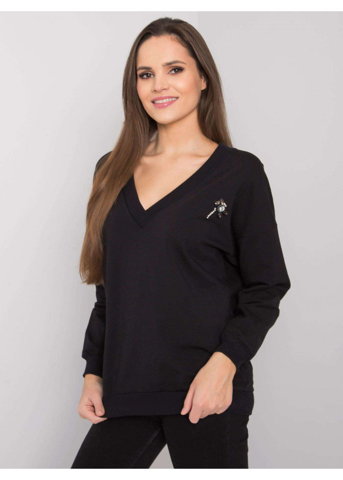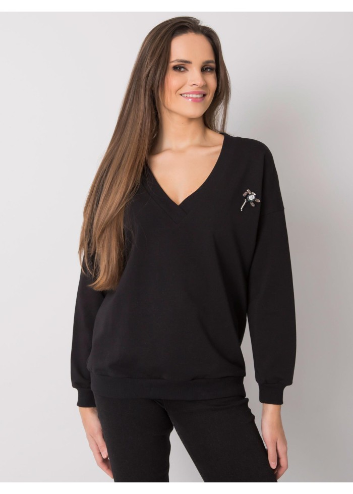 Mikina, výrazný výstrih do v, lémy na koncoch rukávov a v spodnej časti, ozdobná aplikácia, jednoduchý voľnejší strih, spôsob prania: pranie v práčke na 30°c, materiál: 90% bavlna, 10% elastan, modelka má na sebe veľkosť s/m.