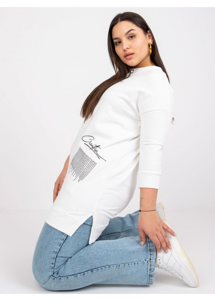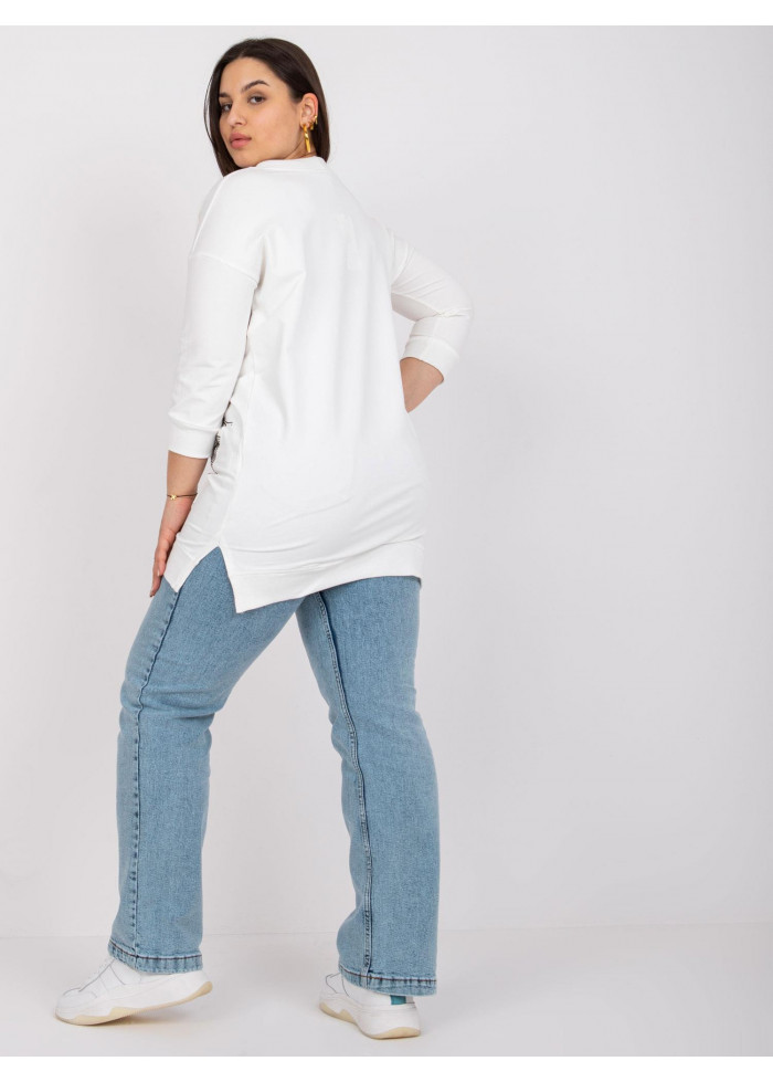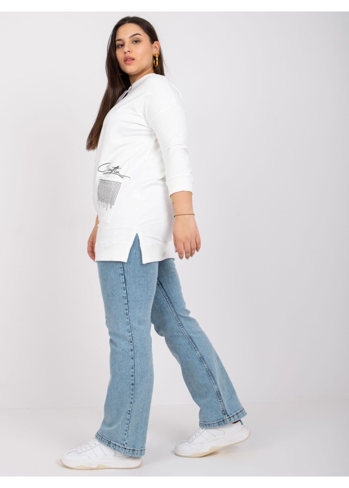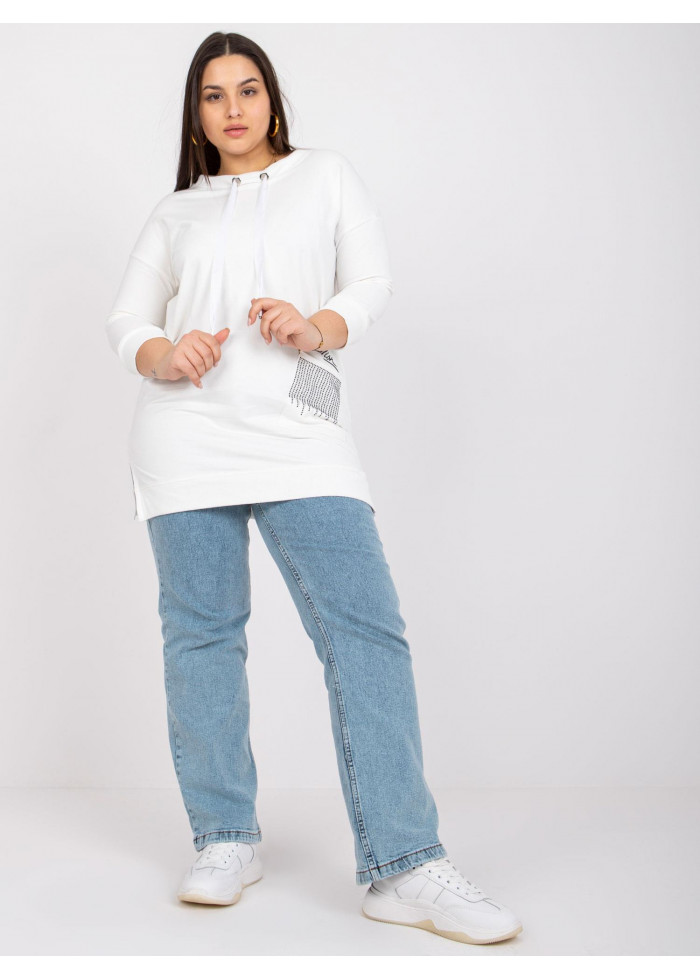 Mikina, ozdobná šnúrka v dekolte, 3/4 rukávy, okrúhly výstrih, ozdobné aplikácie, materiál: 90% bavlna, 10% elastan, spôsob prania: pranie v práčke na 30°c, univerzálna veľkosť, miery modelky: výška 172 cm, prsia 103 cm, pás 73 cm, boky 103 cm., rozmer produktu meraného na plocho:, šírka pod plecami: 56 cm, dĺžka rukáva: 44 cm, celková dĺžka: 76 cm.