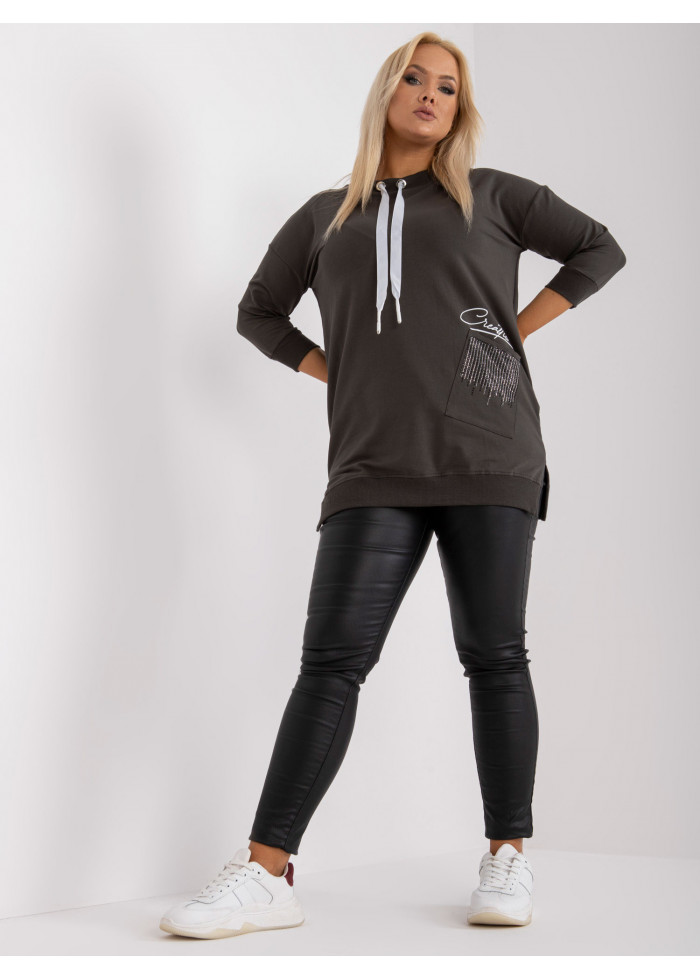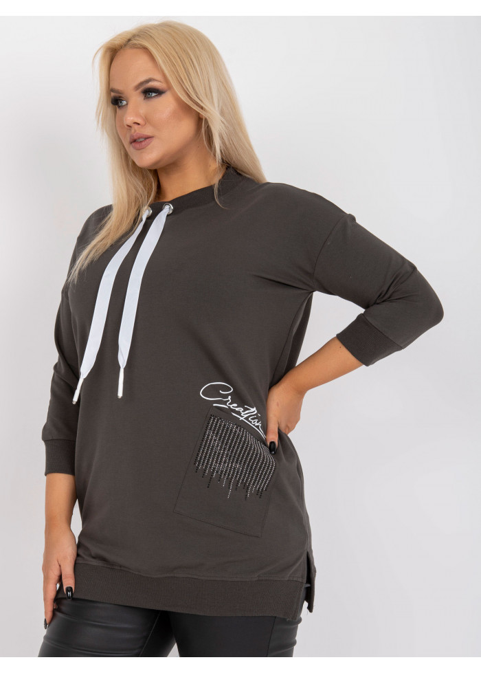 Mikina, ozdobná šnúrka v dekolte, 3/4 rukávy, okrúhly výstrih, ozdobné aplikácie, materiál: 90% bavlna, 10% elastan, spôsob prania: pranie v práčke na 30°c, univerzálna veľkosť, miery modelky: výška 172 cm, prsia 103 cm, pás 73 cm, boky 103 cm., rozmer produktu meraného na plocho:, šírka pod plecami: 56 cm, dĺžka rukáva: 44 cm, celková dĺžka: 76 cm.